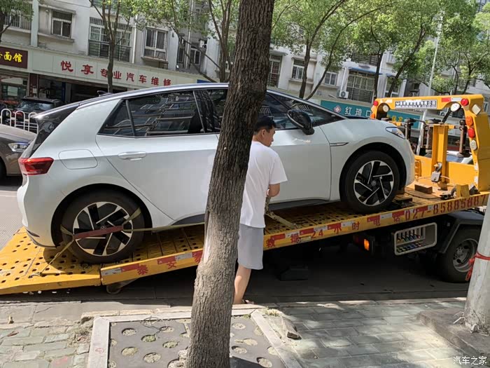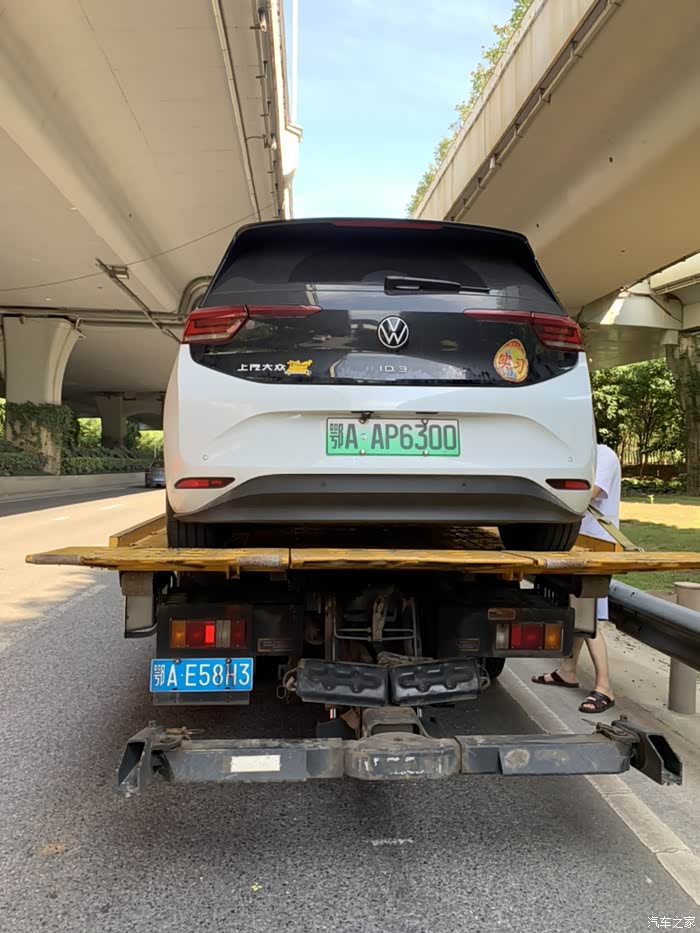 夏日一个周一的早上去上班,7点就出门了,从江城大道地铁口往汉口去,前几天我就感到胎压不足,跑的力不从心,计划今天一定要去补气。刚过一个红绿灯快到三环高架入口时遇到一个小坑颠了一下,随即听到砰的好大的声响,顿时感觉左后轮轮毂着地了,卡卡的声响,我马上意识到爆胎了。幸亏速度慢,人没什么事。但是ID3车机里没有显示轮胎有异常。我扭头看左后轮胎确定瘪了立即开到马路一侧停下,双闪开启,拿出三角架支上,开始打保险电话请求救援。