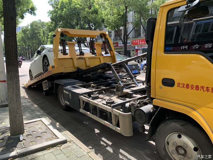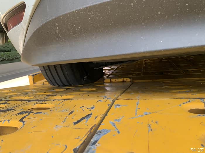 救援车9点左右到了,师傅把我的车开到救援车上,我才看到我的小胖三受伤了,扎了好大一个螺丝钉。我买了半年的新车看着有点心疼。人保车险30公里以内救援免费3次,师傅落实救援车可以停到我指定的17公里远换胎的地方后就出发了。