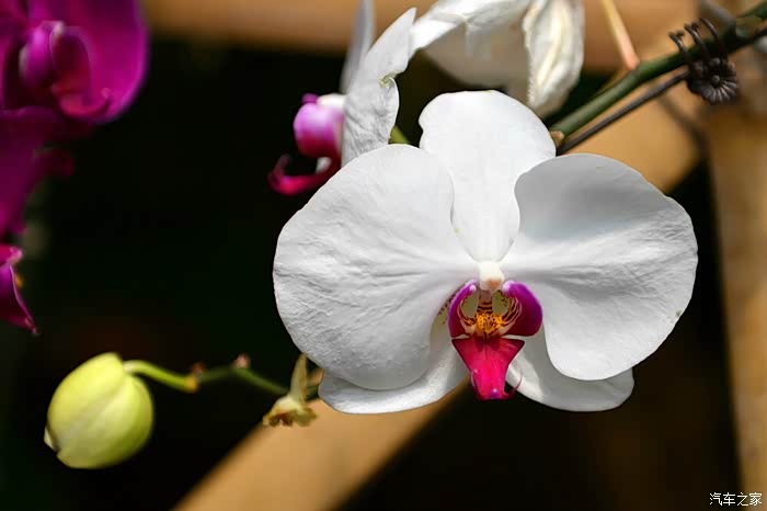 ▲ 也是白色蝴蝶兰,但是红色花蕊的。