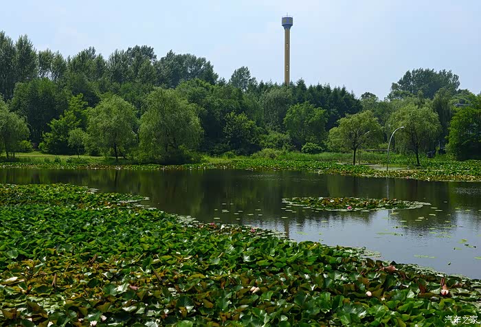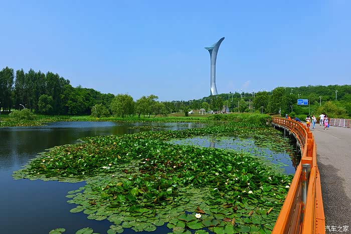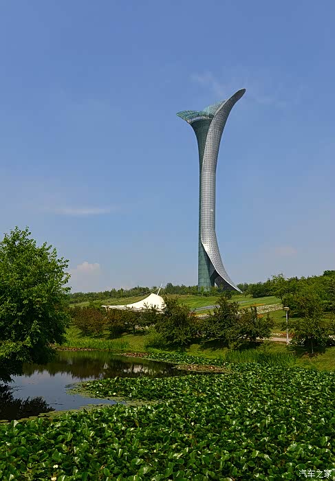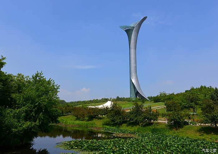 ▲ 走过一片莲花池,远远望见的就是世博会的主题建筑——百合塔 。