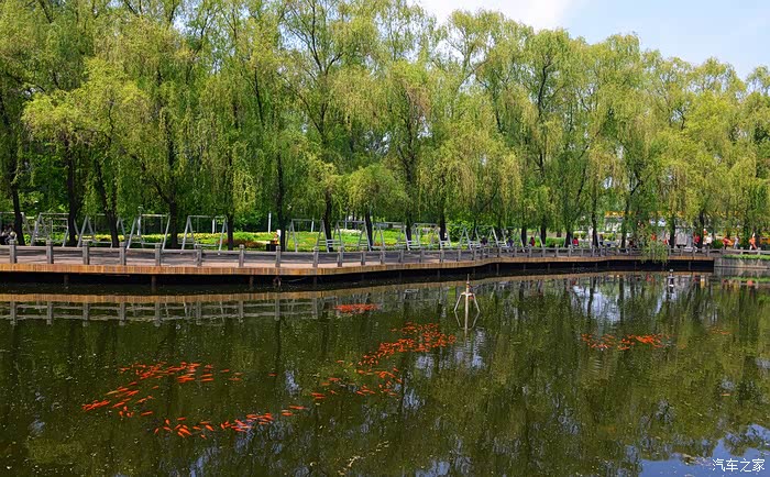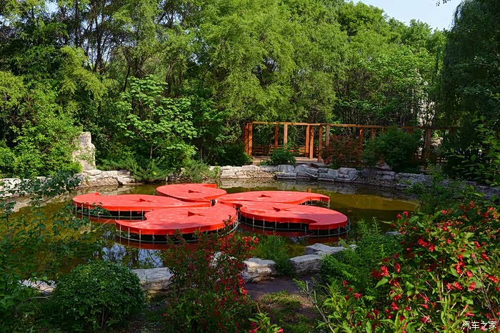 ▲ 出了花园中心,来到了一个人工湖畔,湖中有很多红色的鱼。