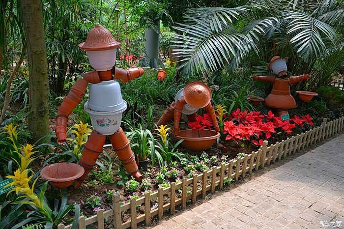 ▲ 玫瑰园里用花盆组成的卡通形象。