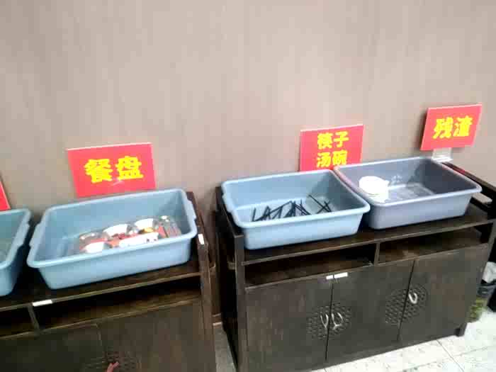 吃完后,大家都自己把餐具分类放好。
