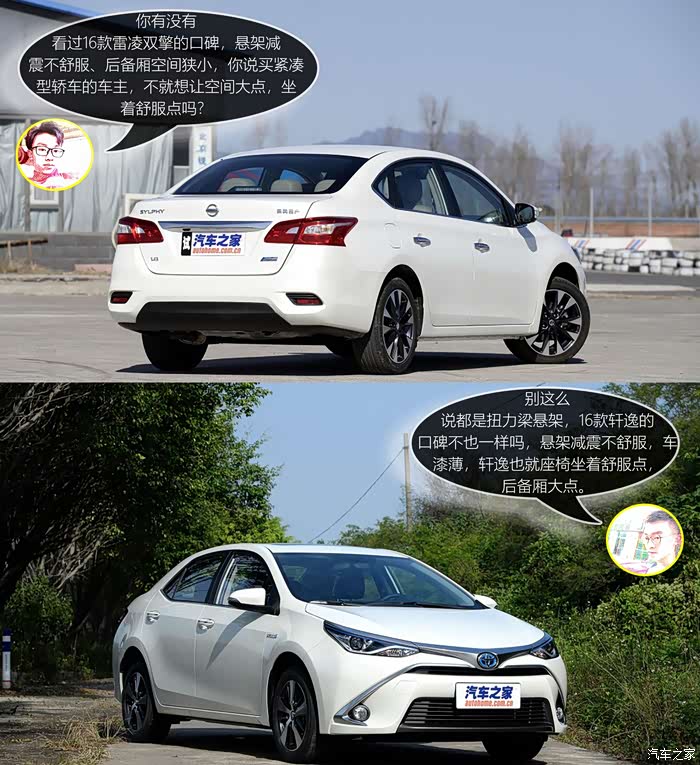 这一期我们选择了两台16款雷凌双擎1.8H V-CVT豪华版(新车指导价:15.98万)以及16款日产轩逸1.8XV CVT智尊版(新车指导价:15.90万),下面我们通过两位不同选车思维的人物,来看看他们是怎么进行选择的。