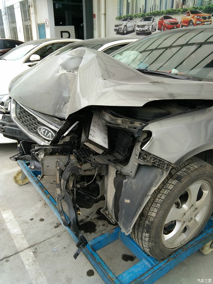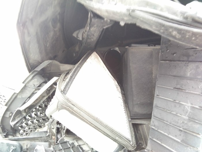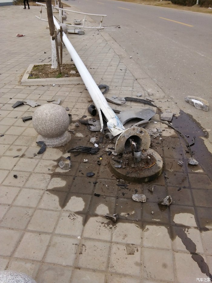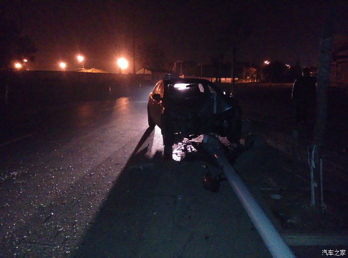2015年1月11号晚上8点37分,老婆顺利产下一千金,我一直陪在她身边。送到病房安排好一切,汗水浸湿了衣服百般难受。病房只能留一个人陪护,本想睡车上的,无奈夜晚太冷。我妈留下陪护,我决定回家洗个澡睡一觉早上早点过去,顺便再带点东西去医院。12号凌晨0点40分离开医院回家,不料在离家还有100米的地方迷迷糊糊睡着了,我是被气囊弹醒的,刺鼻的火药味让我惊醒。睁开眼一看,路灯杆倒了,检查下自己没一点受伤的,后排的很多东西都飞到了前排,眼镜盒的眼镜也掉了下来。打开车门,有点吃力,被翼子板卡住了一点,但还能正常开启。一看,半个车头没了。
