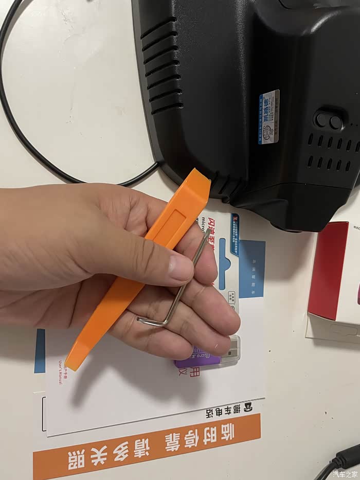 下面开始安装,先把原车壳子取下来,再把记录仪主机卡扣上去,最后插上USB接口就行了。第一步比较重要,因为原车壳子有点紧,大力出奇迹。