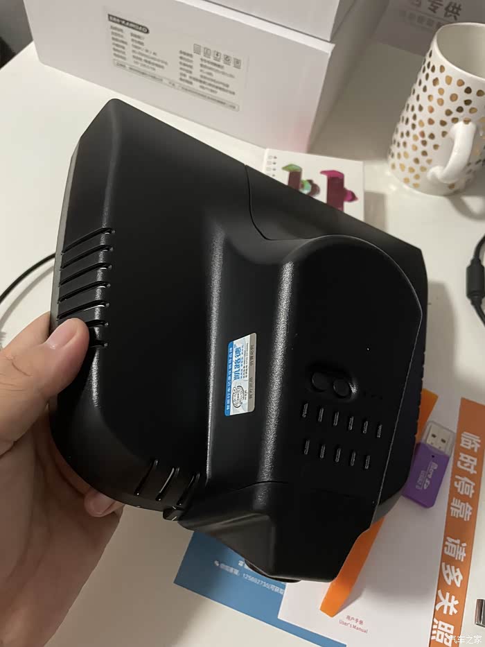 这里看到原车有个探头在上面,记录仪的摄像头在下面,不会干扰原车功能,这个挺好的。新车安装这个合适,不用粘贴膜上,毕竟膜也不便宜。
