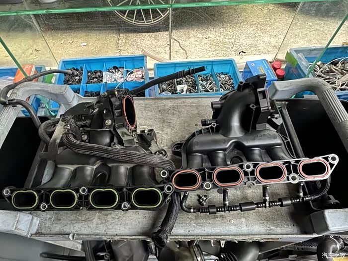 自从80000km加入烧机油行列之后,伴随着烧机油状况的发展(目前95000km;机油上线到下限行驶了约2500km,据说是1升左右的量),不爽甚至焦虑也与日俱增。周一,车子行驶过程中,又莫名报发动机故障(1天后消失)。考虑再三,决定给车子捯饬一下。泡论坛多年,研究5008烧机油也有一段时间了,各路大咖的见仁见智,整理后感觉,还是要从硬件的排查、更换做起。提前约了小梁(具体店名和路牌就不说了,以免广告嫌疑,大致在中环威宁路这里)。1、先排查进气支管,确认是老款,敲定更换;2、气门室盖垫渗油突出,敲定更换;3、既然拆进气支管,进气道清洗(手工+打吊瓶)、节气门清洗也是必须的,安排上(清洗时发现节气门油泥较多,且有少量机油,老款进气支管不灵啊);4、拆的过程发现水泵皮带多处裂纹(新车至今未更换),与摩擦轮一起,敲定换掉——施工从早上9点,持续到下午2点,作为标致专修的大咖,小梁和店里的师傅小弟一起,亲自撸袖子上。诊断电脑排查,故障码都是偶发,可以清理掉;更换维修完成后再次电脑撸一遍,并对节气门进行初始化。着车后试驾:驾驶平顺了很多,怠速也安静了,升档明显积极了。接下来就是观察:经过这一番折腾,烧机油的情况是否得到改善。——以上,与车友们分享