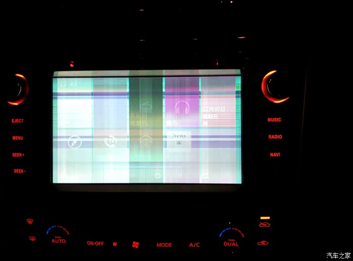 元旦前一天,启动车子的时候,发现大屏有点花屏了,不知道是什么原因?咨询了几个车友和版主,他们说应该是接触不良或者是屏幕坏了。本来还是想换个一个新的大屏,但是车友建议还是更换原厂的CD机好,音质好,稳定性高。我一想也是,平时大屏也基本上使用不到了,现在导航都是用手机,方便,地图更新快,决定换CD机。