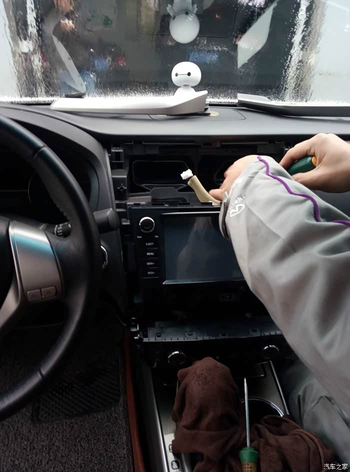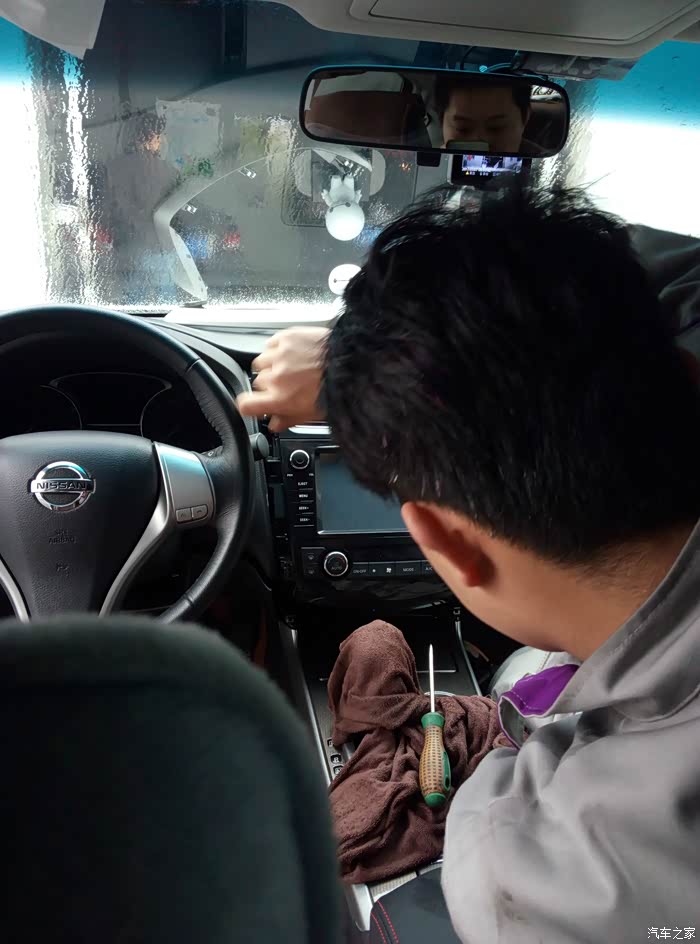小哥躺下来拆导航屏的天线,辛苦了