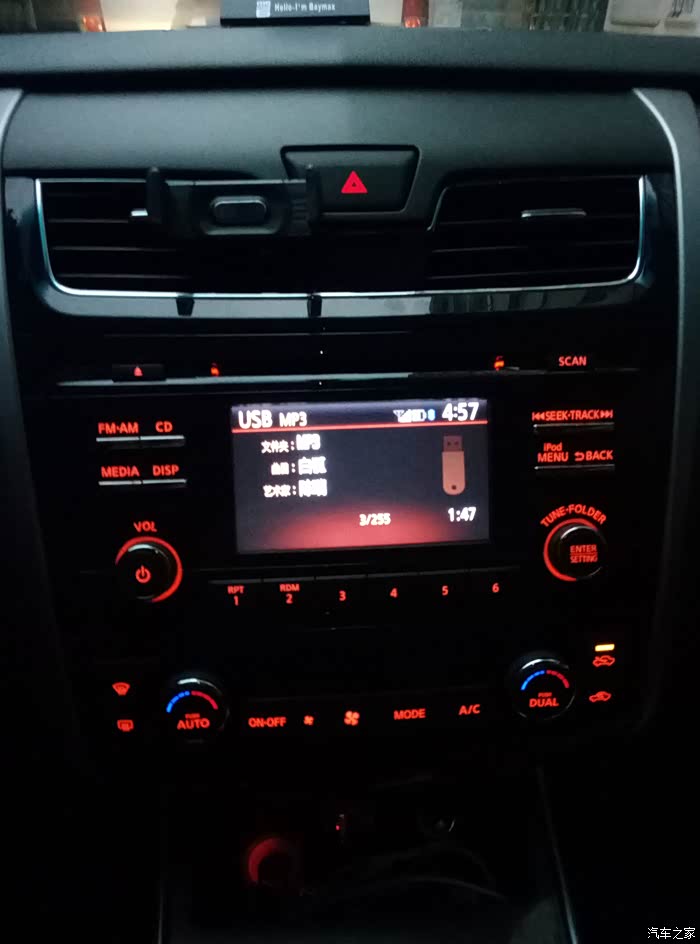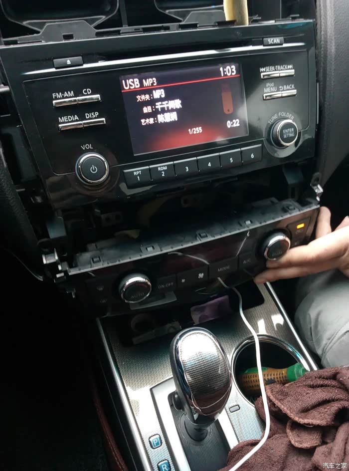 一番打听,本地车友有一个闲置的CD机,可以免费送给我,听了可高兴坏了,但是看到CD机后就高兴不起来了。原来,他保存的CD机是奇骏原车的,不是天籁,他自己也很纳闷,自己的车就是13款天籁呀,怎么会给我奇骏的大屏呢。他想了下,买车后他去找4S售后要原车的CD机,售后就拿一个给他,他也没有看就直接拿回去放在家里了。唉,真的很无语。