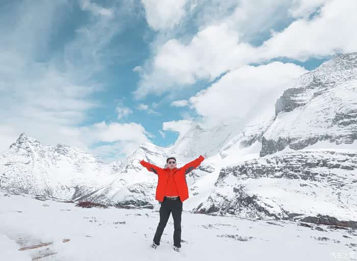 第二天中午,我发现雅哈垭口这里车多了很多,蜿蜒起码几百米,越野车和轿车都有。我纠结再三,要不要从陷车的那条路继续往前去子梅垭口?还是回头绕远走别的路线?最后做了明智的决定,继续沿着陷车的那条路往前开,第二次上路我发现那条路没有难度了,原来现在的季节晚上有积雪容易陷车,白天雪化的差不多了,就成了一条普通的烂路。
