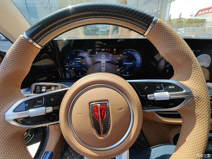 12.3英寸全液晶仪表盘与12.3英寸中控触摸屏组成双联屏设计,科技感十足。中控屏搭载红旗Smile 1.0智能车载系统,支持语音控制、在线导航、车联网等功能,操作流畅,界面美观。