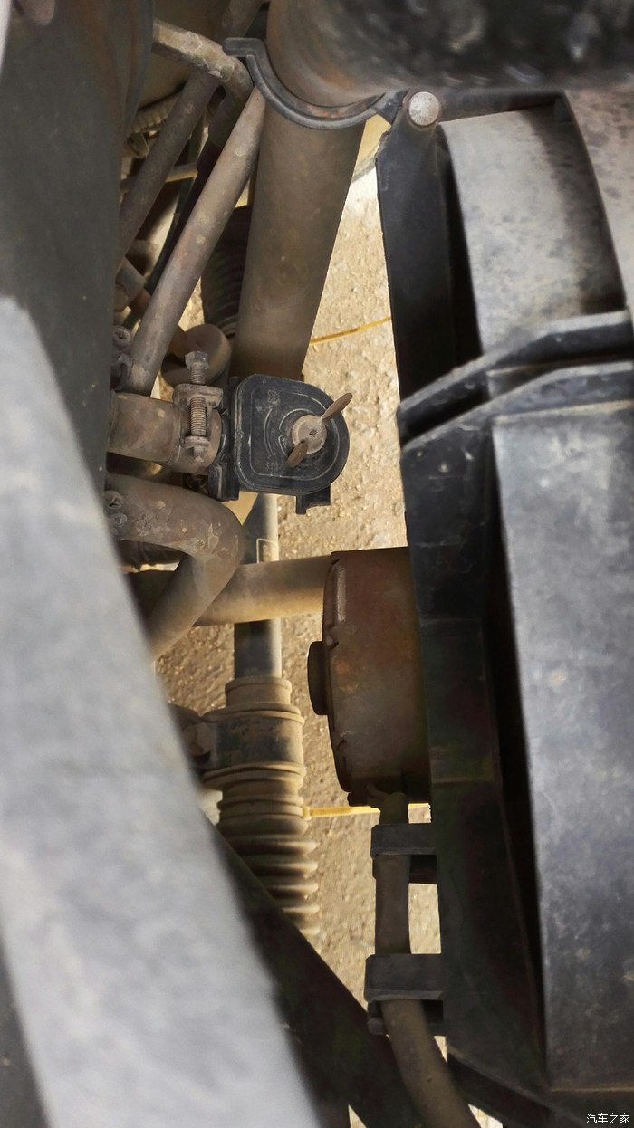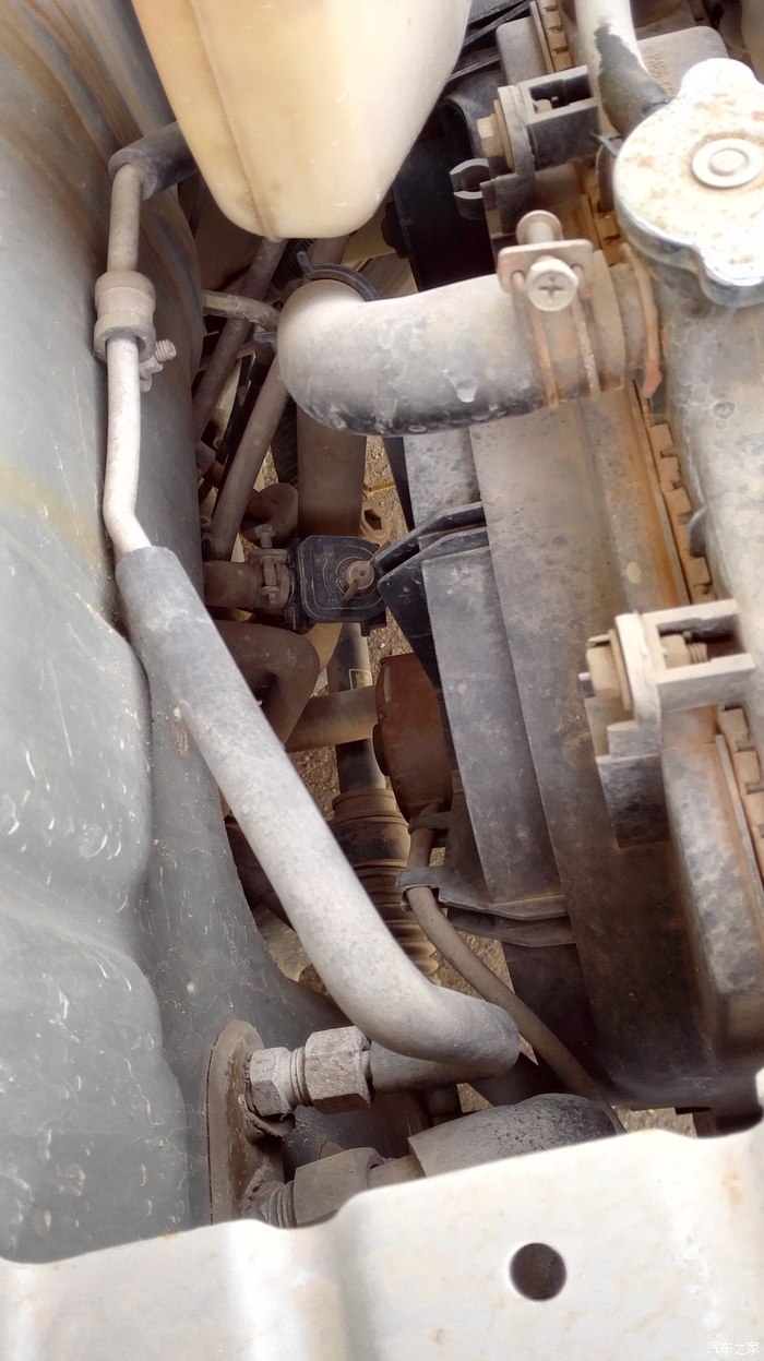 发动机水箱后面,现在开,把按钮往另一方向关,还是看不出来,从驾驶室找过来,有一根水从暖箱过来,就知道是那一个