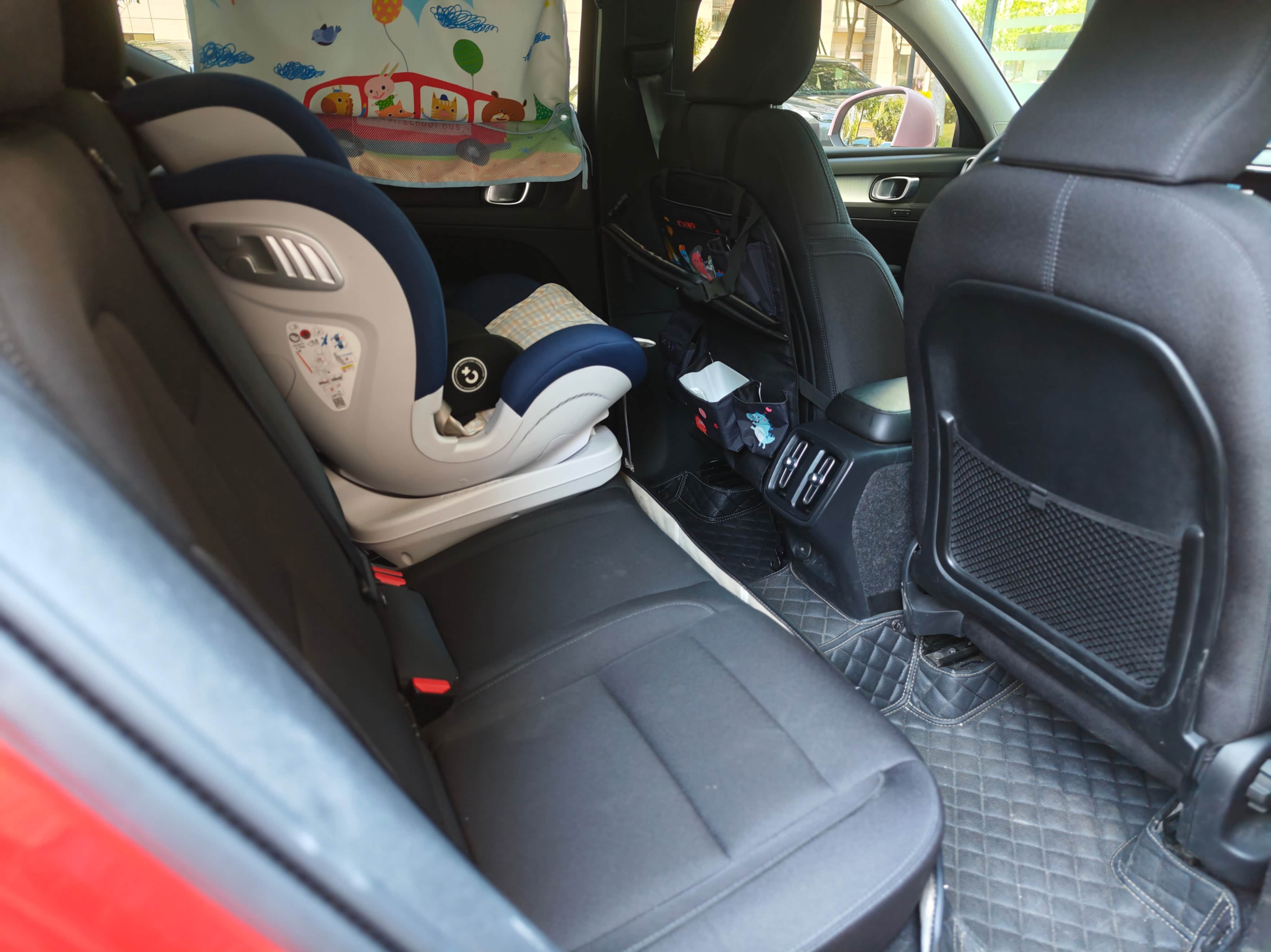 5、车内空间与便利性 :沃尔沃XC40的车内空间还是挺不错的,前排空间宽敞,乘坐后头部与膝部还剩两拳距离,后排安装了一个儿童安全座椅后还可以乘坐两个标准身材的成年人。车内储物空间也很大,且有挂钩设计,方便携带孩子的书包、学习用品等。下午放学,车内温度可想而知,还好我的小沃XC40有远程启动驻车空调的功能,我只需在出发前使用手机app打开车内空调,这样一上车就能感受到清凉一夏。远程驻车空调功能同样适用于寒冷的冬季,简直是严寒酷暑必备神器。