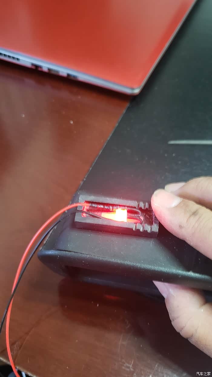 加装一个内扣手灯,方便夜间开门,网购12V的LED灯珠,半透明亚格力导光板,电源从电动玻璃升降开关处取电,为了协调全车绿光显示,装好的红色又被我换成绿色。