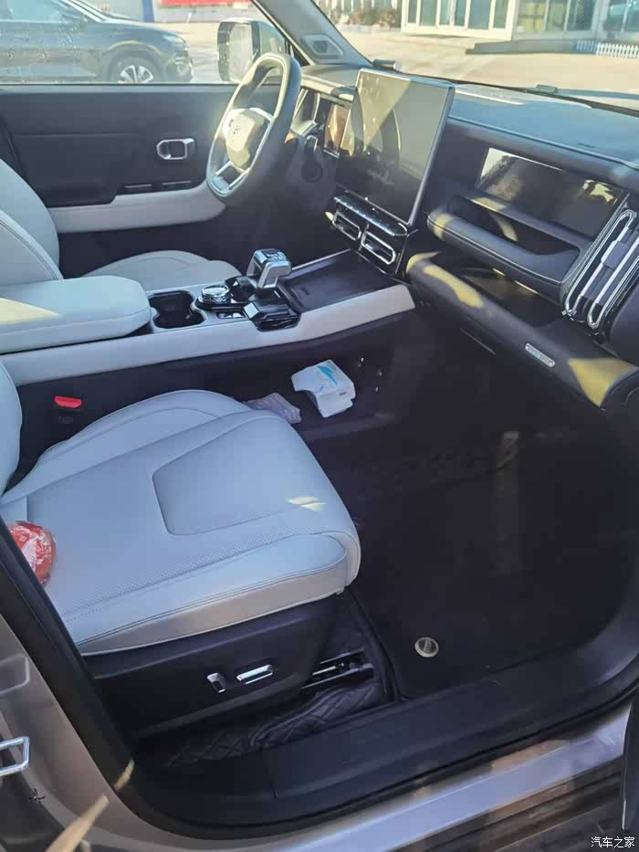 3、内饰。总体上满意。整车内部大空间。显示屏大小适中,画面清晰,里面小程序不少,有些没多大用处,很少用。屏显反应速度还行吧,但是天冷时反应有点慢,别的车型是不是也这样就不知道了。开机音量忽大忽小得让4s瞅瞅。中控屏信息显示较多,开始时感觉有点乱,时间长了就习惯了。控制台造型多,凹凸多,容易积灰,清理起来比较麻烦,对懒人不友好。座椅软装在买车时只有一种灰白色颜色,没得挑。白色容易脏,害得我有点神经兮兮怕弄脏了。座椅有多种记忆模式,包裹性不错,坐姿很高,视野很好,A柱盲区不明显,设计比较人性化。座驾驶座上看车头感觉特别宽,有种开卡车的感觉