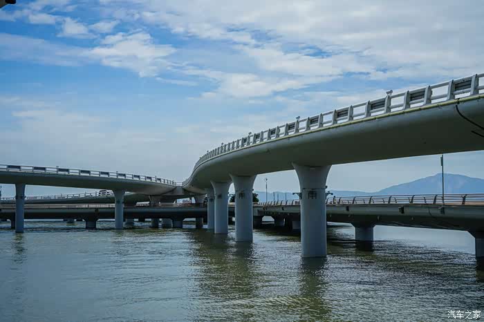 前天开着法拉利经过大桥的时候,也发现了它的特别,宛若行驶在海中,低桥位段的桥面标高只有5米,被认为是目前世界上离海平面最近的桥梁。