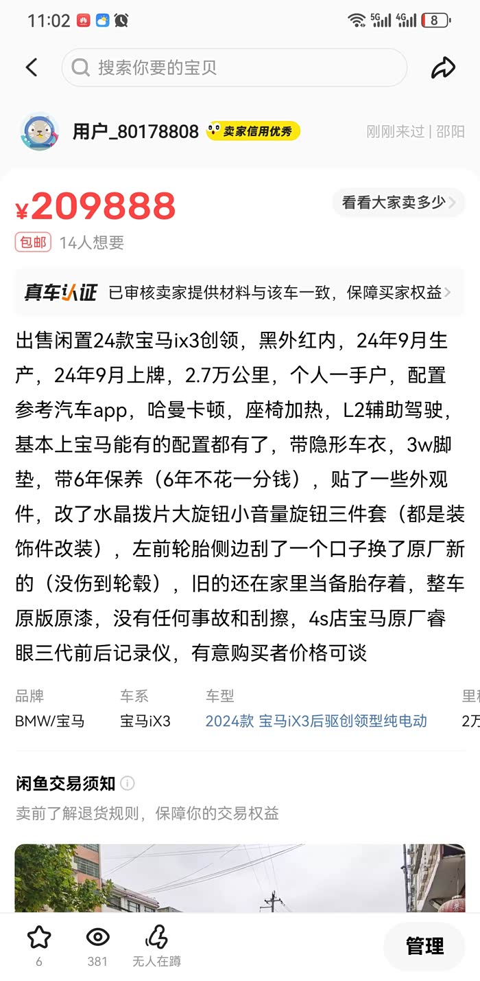上个月提的ix1 25L 白色X设计款,车子非常满意,就是价格没你们说的那么便宜,我是裸车15万,零首付,两年后结清,利息14000多一点,送原车贴膜和全包脚垫,旧车报废国补2万,保险上牌共9000。昨天又给换了前脸,帅气了很多。