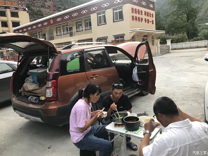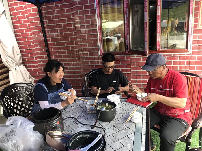 不知不觉快一点了,在路边找一块绿荫,觅一份清凉,享受今天的午餐。不一会,旁边又来了一家人,嘿嘿,都是四川老乡,给他们几块正宗的牦牛肉尝尝