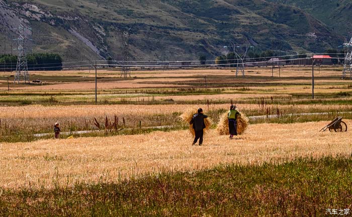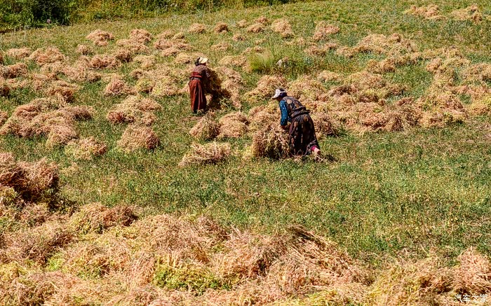 山,越来越矮,土地,越来越肥沃,金灿灿的青稞热烈地铺满了山谷;金碧辉煌的寺庙如慈祥的老人,静静地守护着一方天地,空气中,弥漫着一份喜悦 ,祥和...