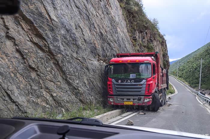 这条路上,滑坡,飞石,泥石流随处可见,暴雨天走在这样的路上,不知是什么心情