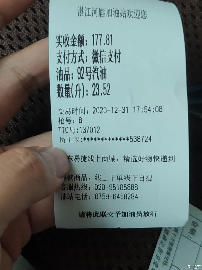 开空调跑了394公里,其中后端村路有50多公里,再加油为23.5升汽油,加油前续航油针还有一半以上。