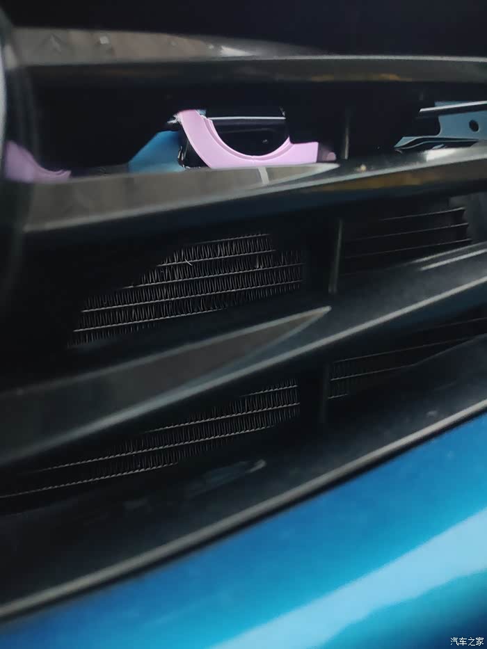 行驶空气进入格栅到水冷蒸发箱,蒸发箱阻力逼让空气往上下流动,所以这开孔形成主动进气通道口,提高进气衔接效率。速度越快开孔进气量越大,自吸发动机是被动进气,而增加主动送气帮助进气效率。撞风进气还能降低进气温度,提高发动机进气密度,动力质量有一定提高。虽然没直撞风更高效,开孔保持高位能防进水作用。