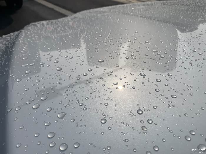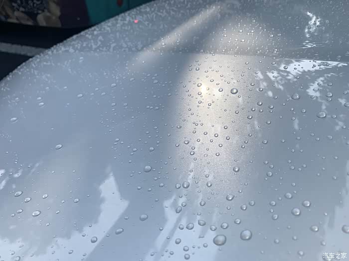 以下是打蜡40天的引擎盖照片,露天停放,遭遇十几场雨,效果依然健在,出乎意料。期间车身上落下的鸟粪浆果树脂可以轻易被一场雨自然冲刷干净,不需要专门洗车。车身其他地方的效果不逊于引擎盖,毕竟引擎盖是必然被暴晒、高温且容易接各种脏污的地方。