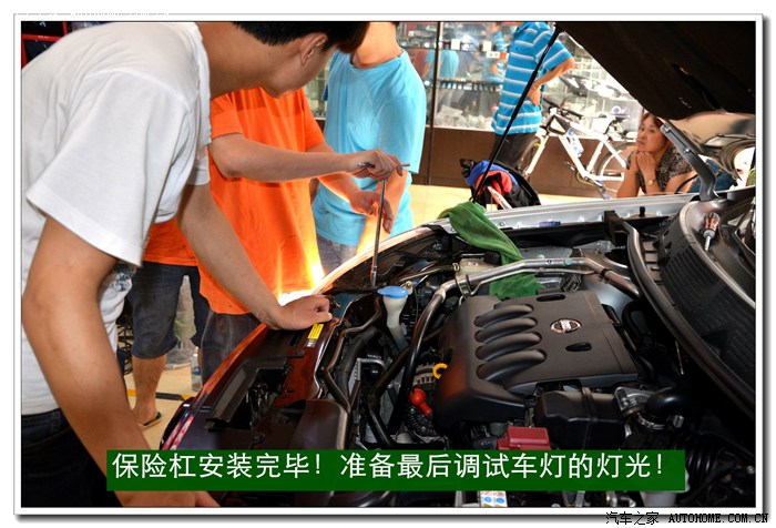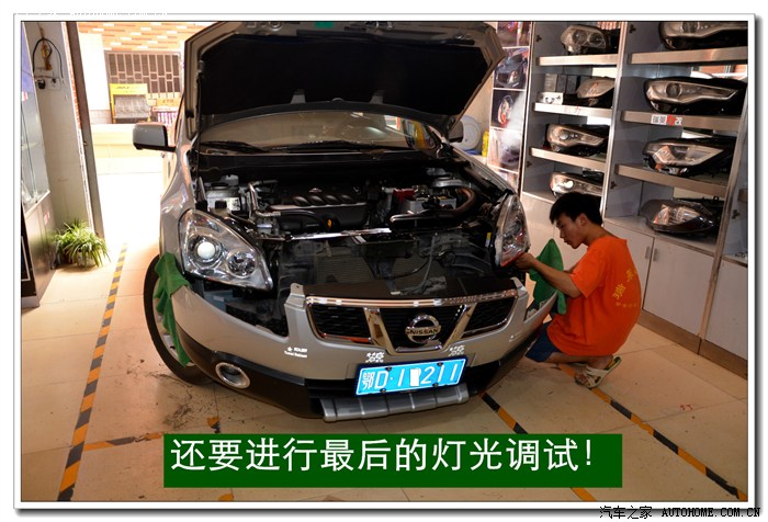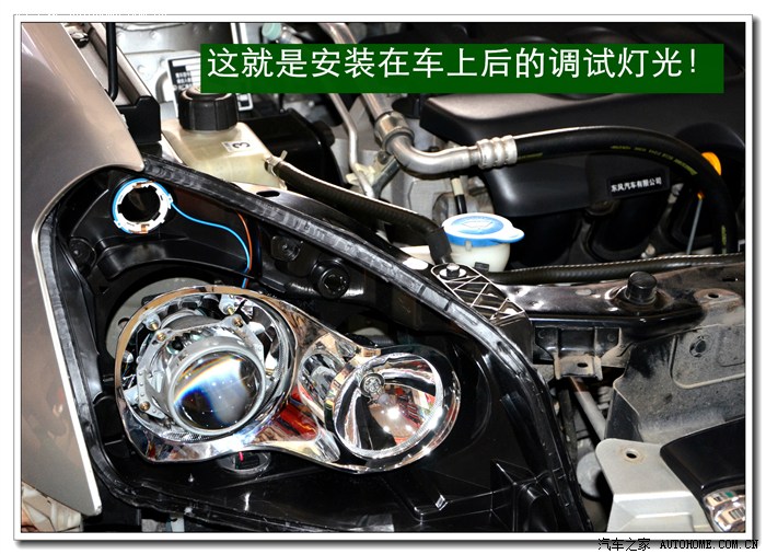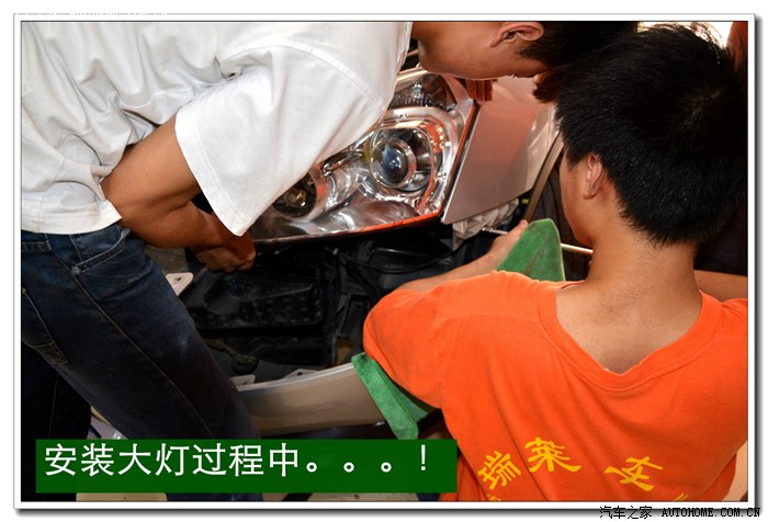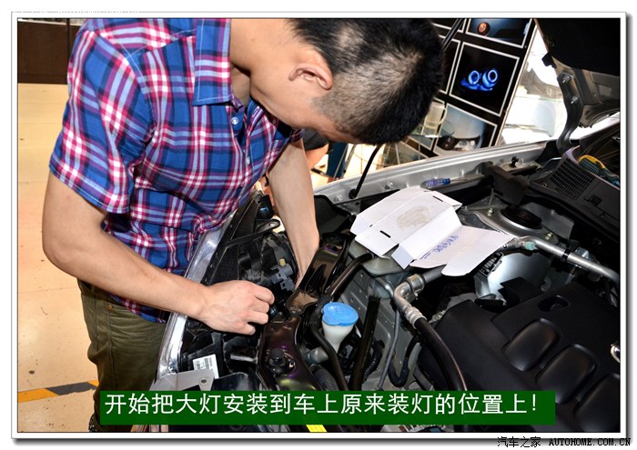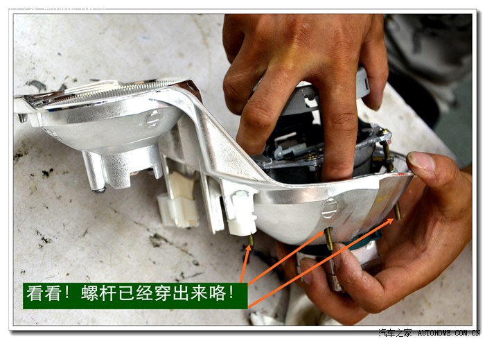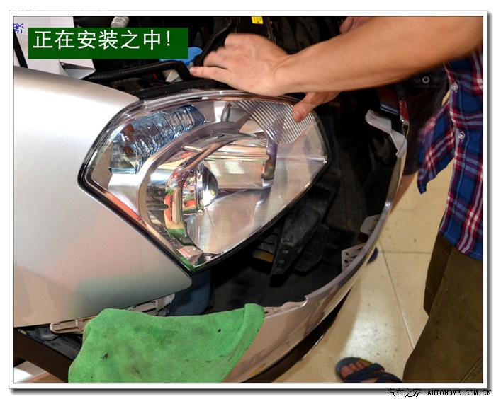 13、将密封好的大灯总成安装到车上原来的位置,并固定好后通过手动方式进行灯光高度的微调,以达到最佳效果。本工序完成后就要安装保险杠,安装完毕后还要进行最后调试确保达到规定的要求。