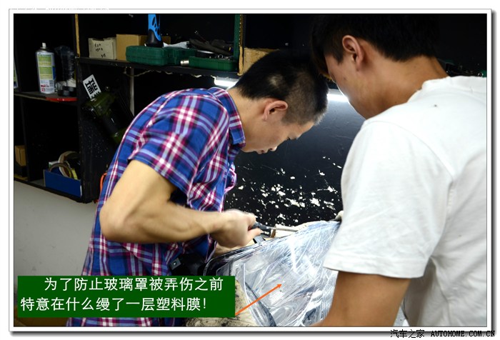 3、 拆开的大灯要做好清洁,贴上专用大灯罩保护膜,防止施工时弄伤玻璃罩的表面。同时也可以减少以后清洁玻璃罩表面的工作量。