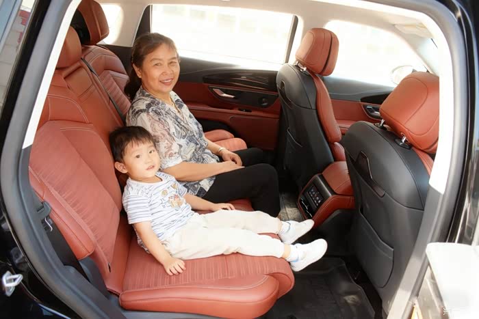 后排功能也不少,前后靠背都是电动调节,还有座椅加热、通风、按摩,甚至比很多车的前排配置还高。我丈母娘和我妈对按摩比较感兴趣,每次带他们出去就当给他们免费体验按摩椅了。