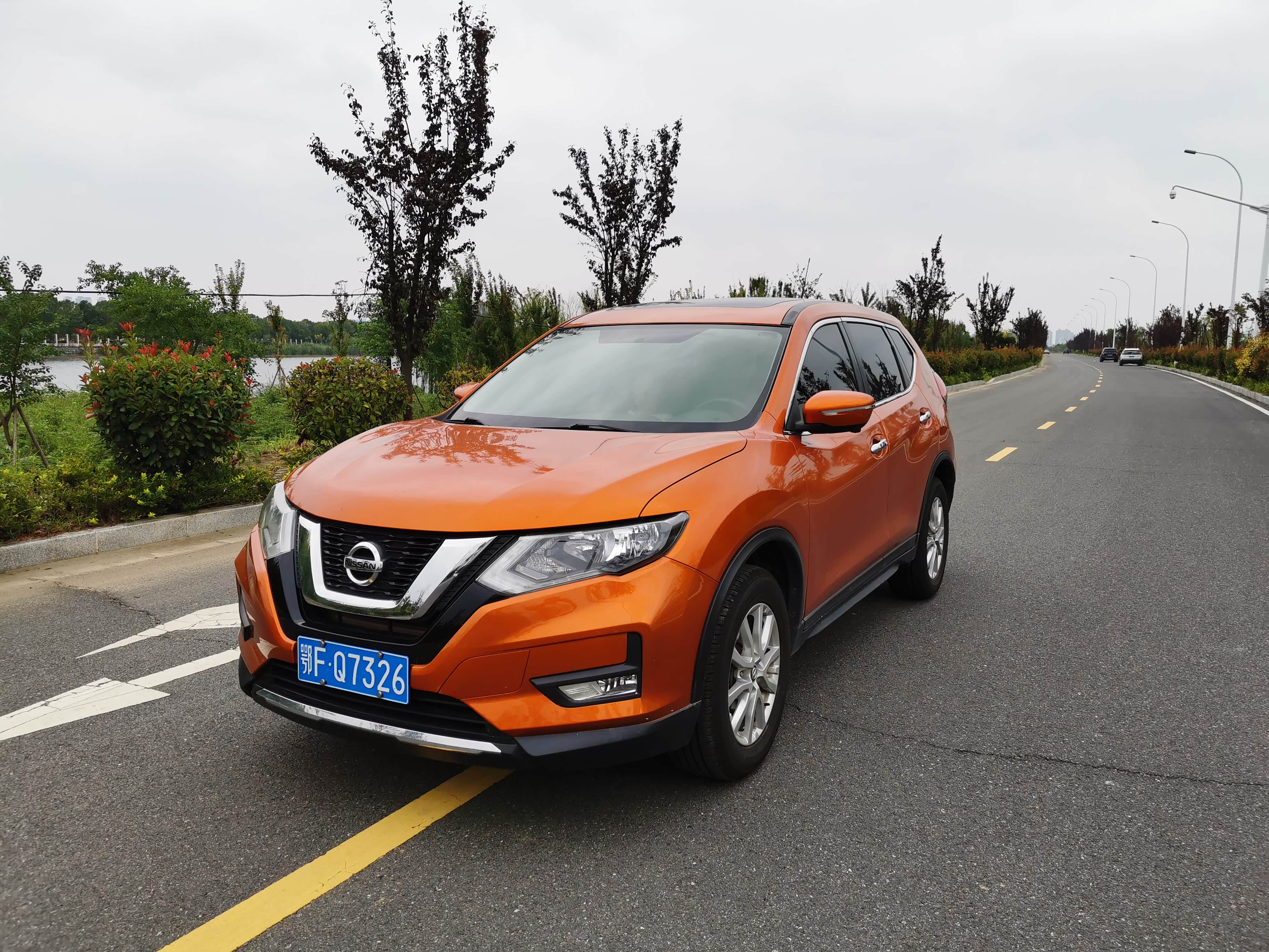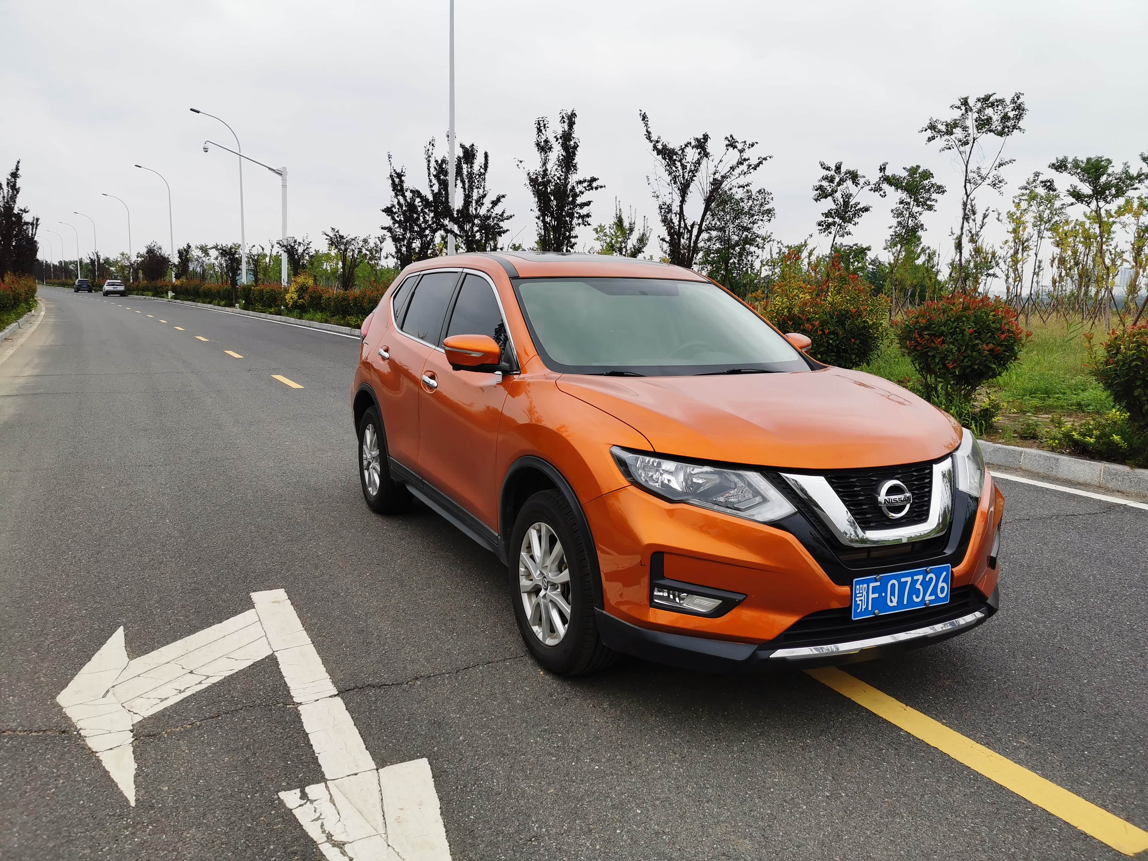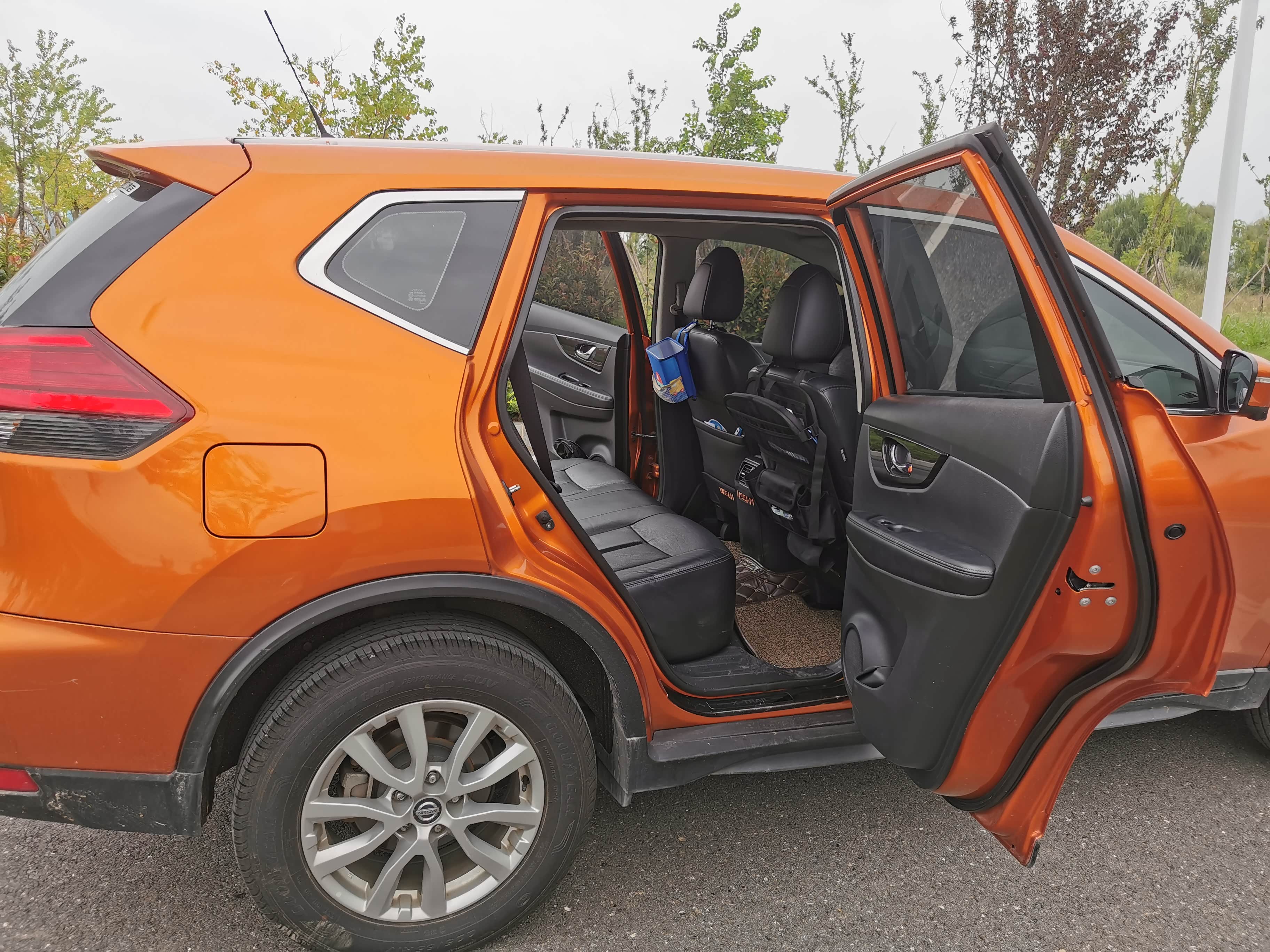 再看外观,2017款奇骏比老款好看太多,当年就是冲着颜值买的。日产V型大格栅特别显眼,镀铬装饰看着很大气,不像有些车的镀铬显得廉价。车身线条很流畅,不是那种方方正正的硬派风格,家用很合适,极光蓝这个颜色我至今都喜欢,洗干净后在太阳下看着特别亮。车尾的LED灯带晚上点亮后辨识度很高,隐藏式排气也让车尾显得干净整洁。不过缺点也很明显,全系除了顶配都是卤素大灯,晚上开车照明效果太差,尤其走没有路灯的乡下路,总感觉看不清,后来我自己花钱改成了LED灯。还有轮毂,2.5L车型是18英寸的,看着还行,但轮胎噪音有点大,而且胎壁比较薄,上次不小心压到石头,直接鼓包了,换个轮胎花了一千多。
