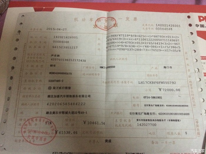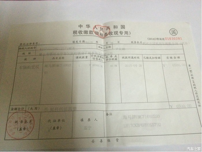 购置税发票6500大洋,刷卡刷我的心在滴血啊