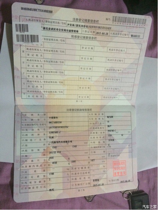 车买了一个月,一直没发贴认证。好像听说伸精没多大用。今天沒事随便发几张。什么都没遮都是真实姓名地址。也没什么见不得人的。