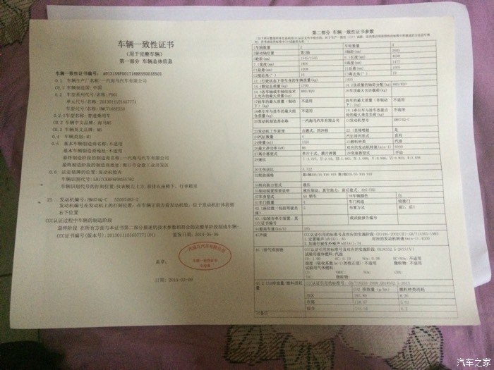 车辆一致性证书,好像没有什么用