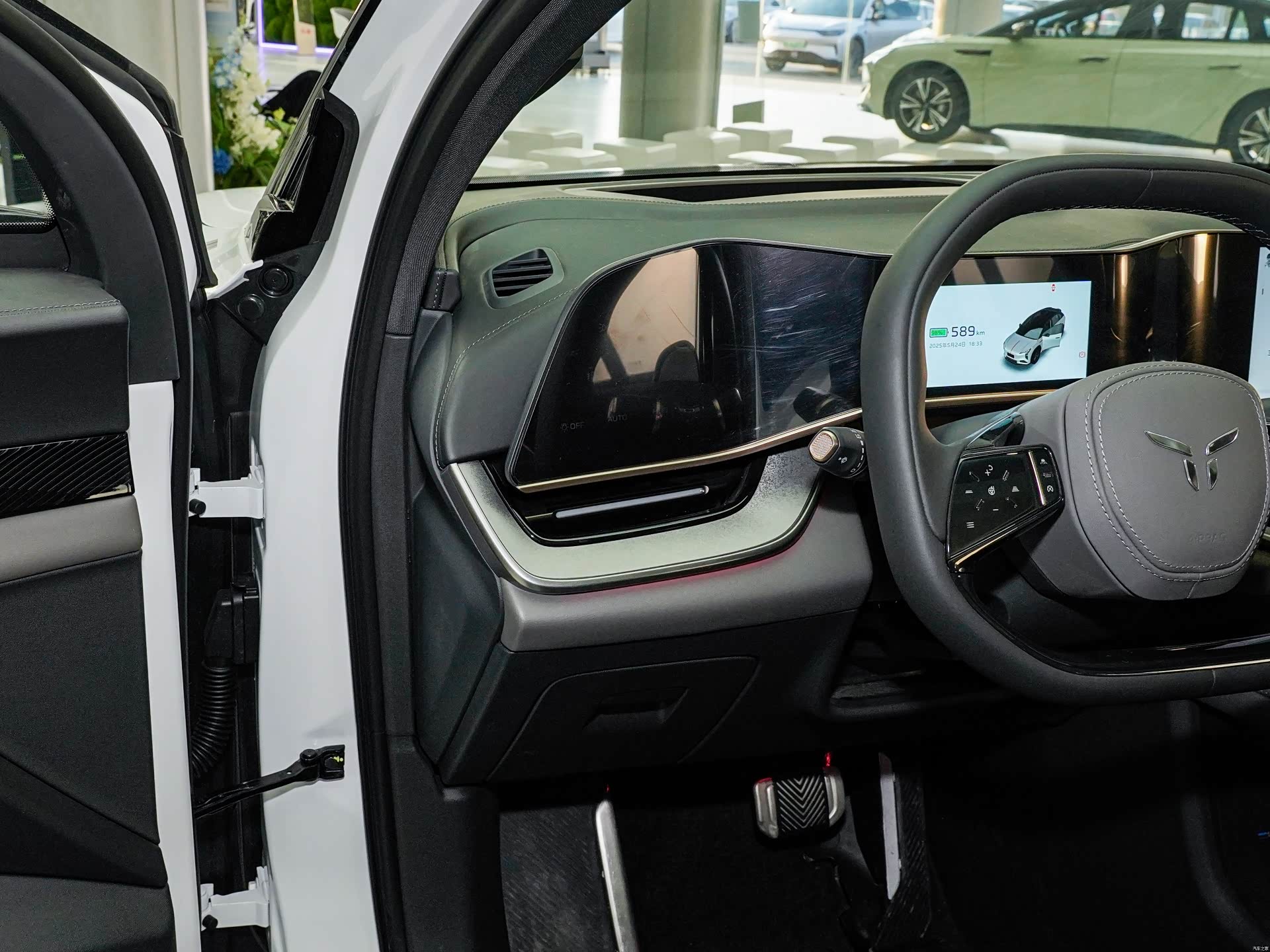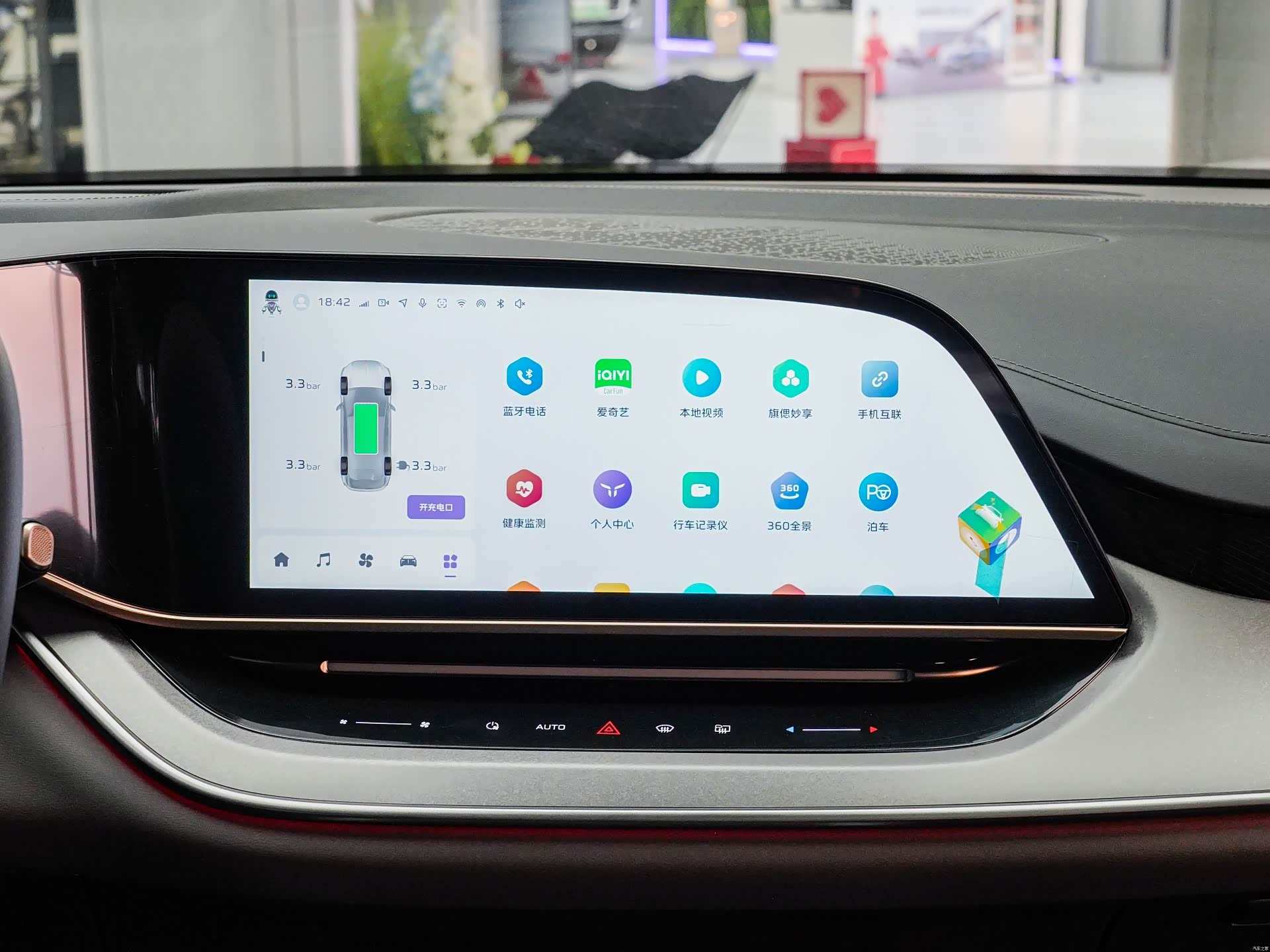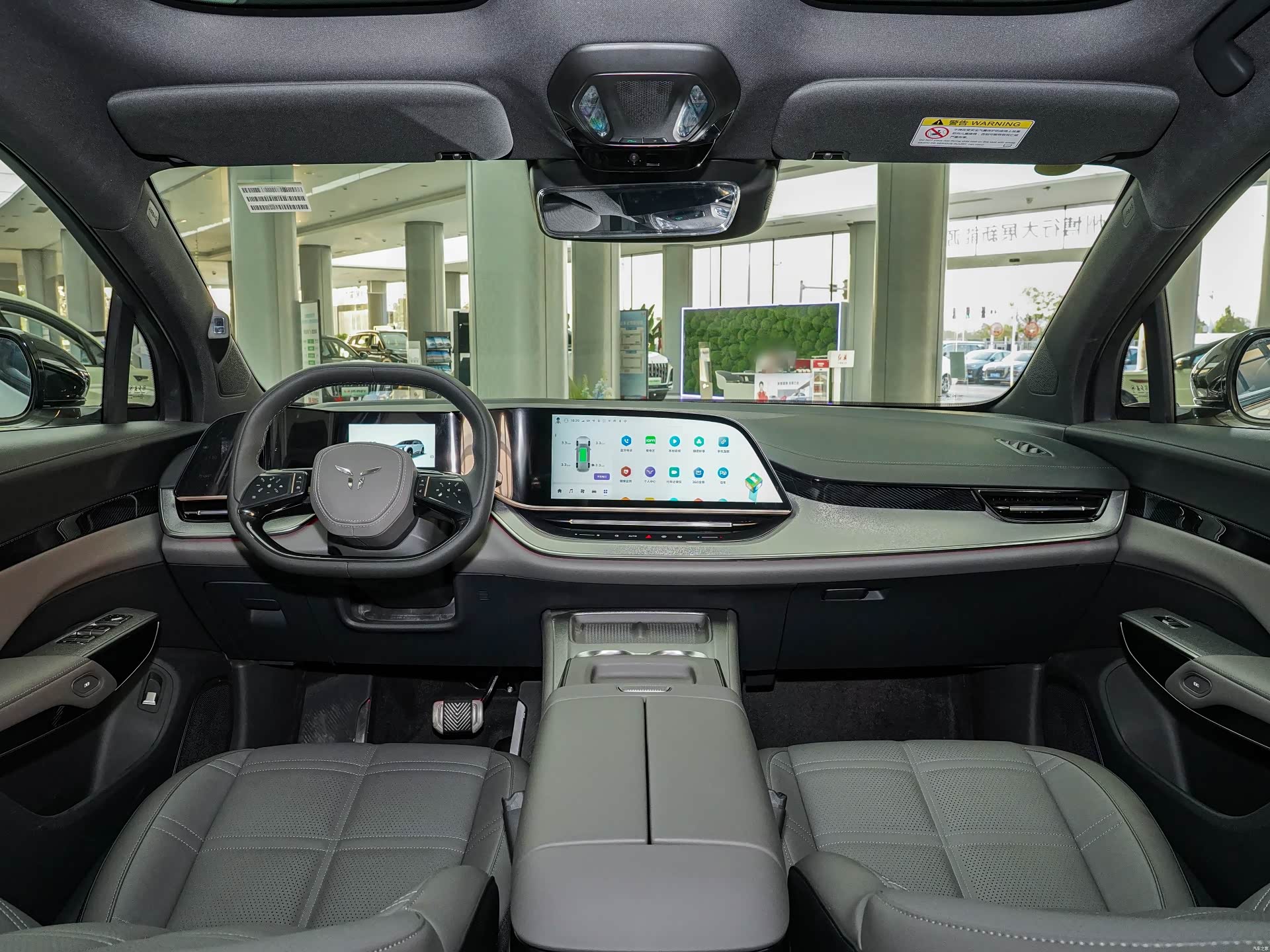 中控台以"山水座舱"为理念,贯穿式"天穹"曲面屏连起12.3英寸仪表、27英寸中控和12.8英寸副驾屏,三区独立操作互不干扰。内饰可选"丹砂红"再生真皮或"青瓷"环保麂皮,连按键式车门开启都透着极简巧思,彻底告别传统物理拉手。