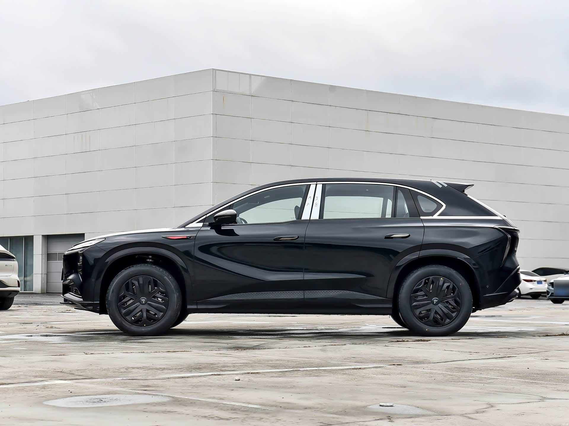 封闭式"高山飞瀑"格栅暗藏玄机,内部发光红旗竖标夜晚点亮时仪式感爆棚,搭配"龙睛"分体式LED大灯,264颗光源还能弹出动态迎宾灯语。前包围的"气韵"导流槽不仅把风阻系数压到0.24Cd,还刻着中式云纹,功能性与美感全占。