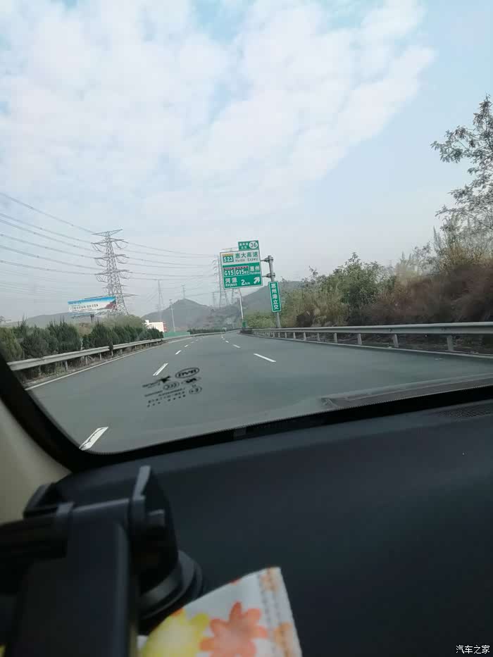 在2019年1月下旬,我跑了一趟高速,之前也跑过好几趟了,都是广东省内跑,路上很多车,没怎么记录,这次感觉路上没啥车,所以就用车载手机架,把手机架好后路途中拍了几张。总体感觉还是蛮不错的,因为车重,跑起来很稳,不知不觉都会超120,但是由于没过磨合期,所以还是老老实实把车速控制住100左右。这车跑起来,如果电量足的话,真的非常非常好开,动力响应真的非常好,推背感十足,如果在低电的时候,跑起来也还可以,就是动力响应没那么好,而且发动机会比较吵,不过还是可以接受的,馈电我到现在都还没遇到过,开到完全馈电还真没有,除非你是刻意用纯电跑,跑到馈电,一般情况下HEV模式都很难开到馈电,还有就是跑高速底盘传来的噪声还是蛮明显的,不过发动机的噪声控制的还行(不是馈电情况下,但新款在馈电情况下行驶质感应该也比老宋强不少),油电之间切换很顺很顺,可能是由于全新宋DM加入了BSG电机的原因吧,老款没开过,不知道什么感觉,反正我加了一个微信群,全是宋DM的,里面有新宋和老宋的用户,也有老宋换新宋的用户,老宋普遍反映是没电开起来很要命,新宋开起来好非常多了,看来BSG电机起了至关重要的作用,不过小问题还是有的,我现在脚踩刹车,慢慢抬脚松刹车时会发出嘎嘎的金属摩擦声,好像刹车片没有松开是的,擦得嘎嘎响,还有主驾驶的车窗,玻璃有点过度升起,卡的紧紧的,就有一种很紧的声音,开起来会叽叽的响一阵,等车窗慢慢松了些声音就没了。其余的到目前发帖为止3100多公里还没什么别的状况发生,等到时首保后再跑跑看了。