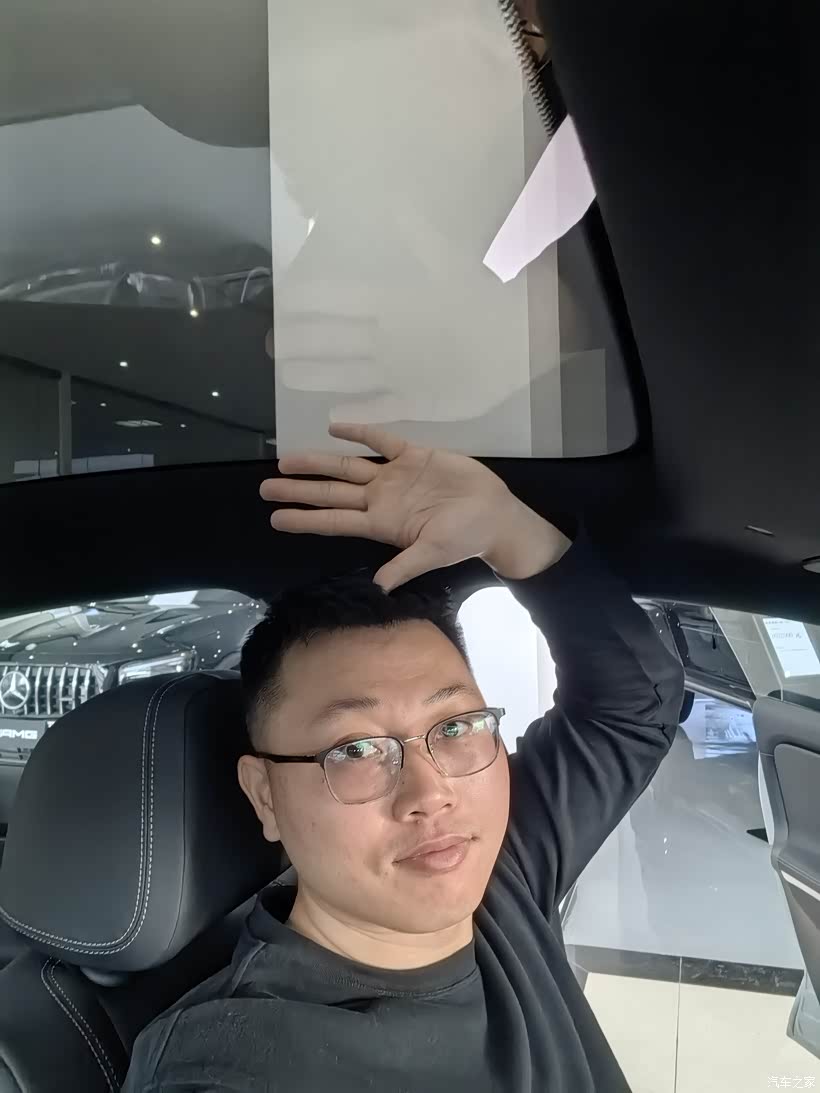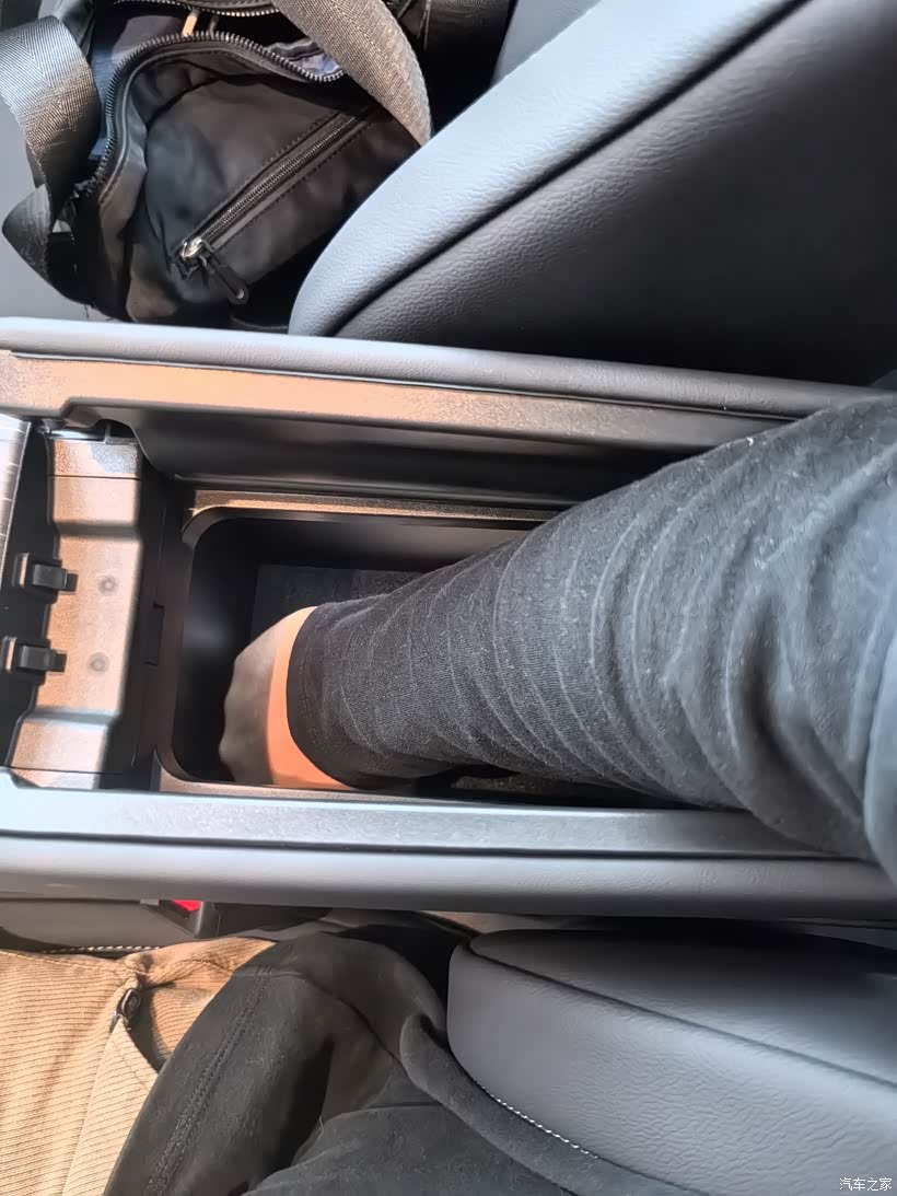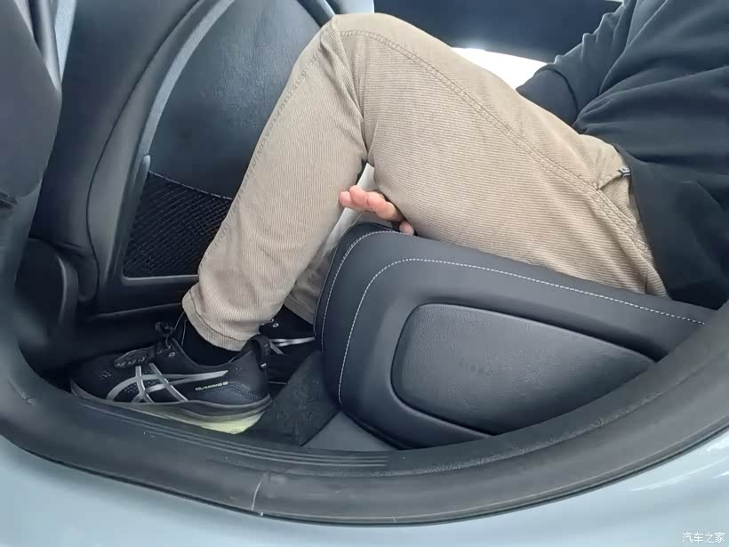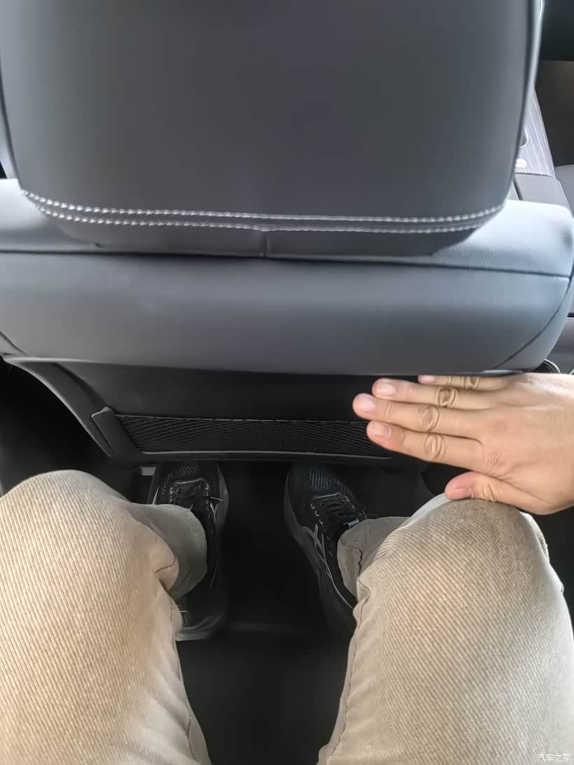 ①将前排座椅调节到最佳位置后,头部空间有1手掌多些,前排空间尚可,另外主驾座椅有个手动向前拉的腿托,休息时会有些用处。