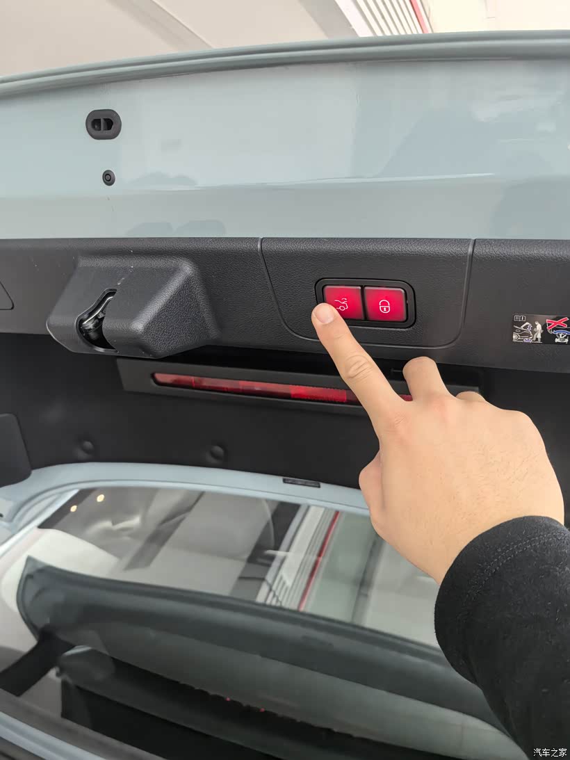⑤后备箱开启按钮是在奔驰logo位置,需要用力按下才可以打开后备箱盖,打开并没有太大问题,而且打开位置高度不矮,开启后备箱特别方便,这是后备箱好的一面。不好的方面就是关闭后备箱的时候,电子后备箱关闭的速度偏快,没有很明显的缓冲,我对比了其它奔驰车的关闭情况,目前了解到的就CLA EV这款车存在这个问题,建议改进。