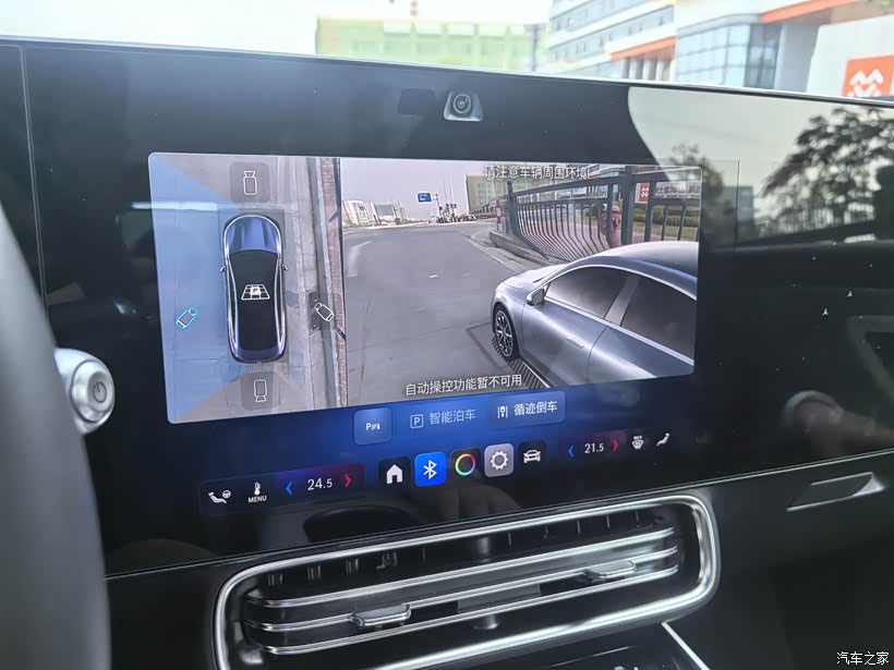 ☞动态试驾最后一点需要分享的就是自动泊车,打开泊车跟国内大部分车企大差不差,只是它不需要人工寻找车位,而且自行识别泊车,这块我觉得挺智能,而且从开始到结束没有明显的卡壳行为,停车位也非常准确,该功能我还是觉得挺好用的。