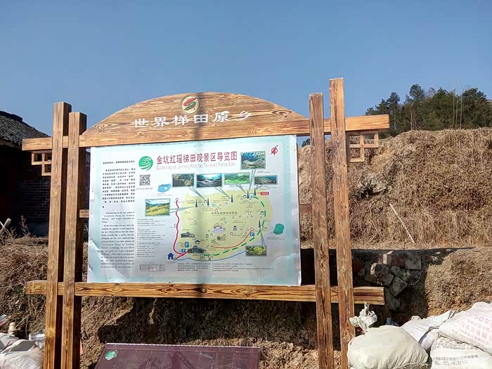 游完金坑红瑶梯田,我们将转向平安壮族梯田,这是路牌