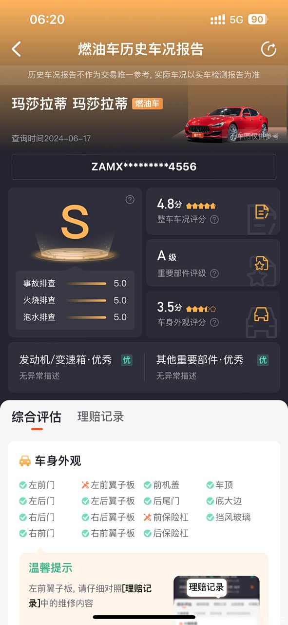 17年17款玛莎拉蒂吉博力行驶里程8.2万公里,原版车况2个面油漆,改装?维护花了四五万,三碳清洗,火花塞,全车油水,7万公里的时候全换了,有结款记录,到手0投资,车况板正不要拿事故车瑕疵车租赁车保养不当槽车的车价来对比,仅一次过户记录。现27.8个出手(前脸已升级最新款未拍照片,大灯也升级了led)轮毂升级20寸,原车18寸轮毂都在,任何第三方检测都能过,查博士s级