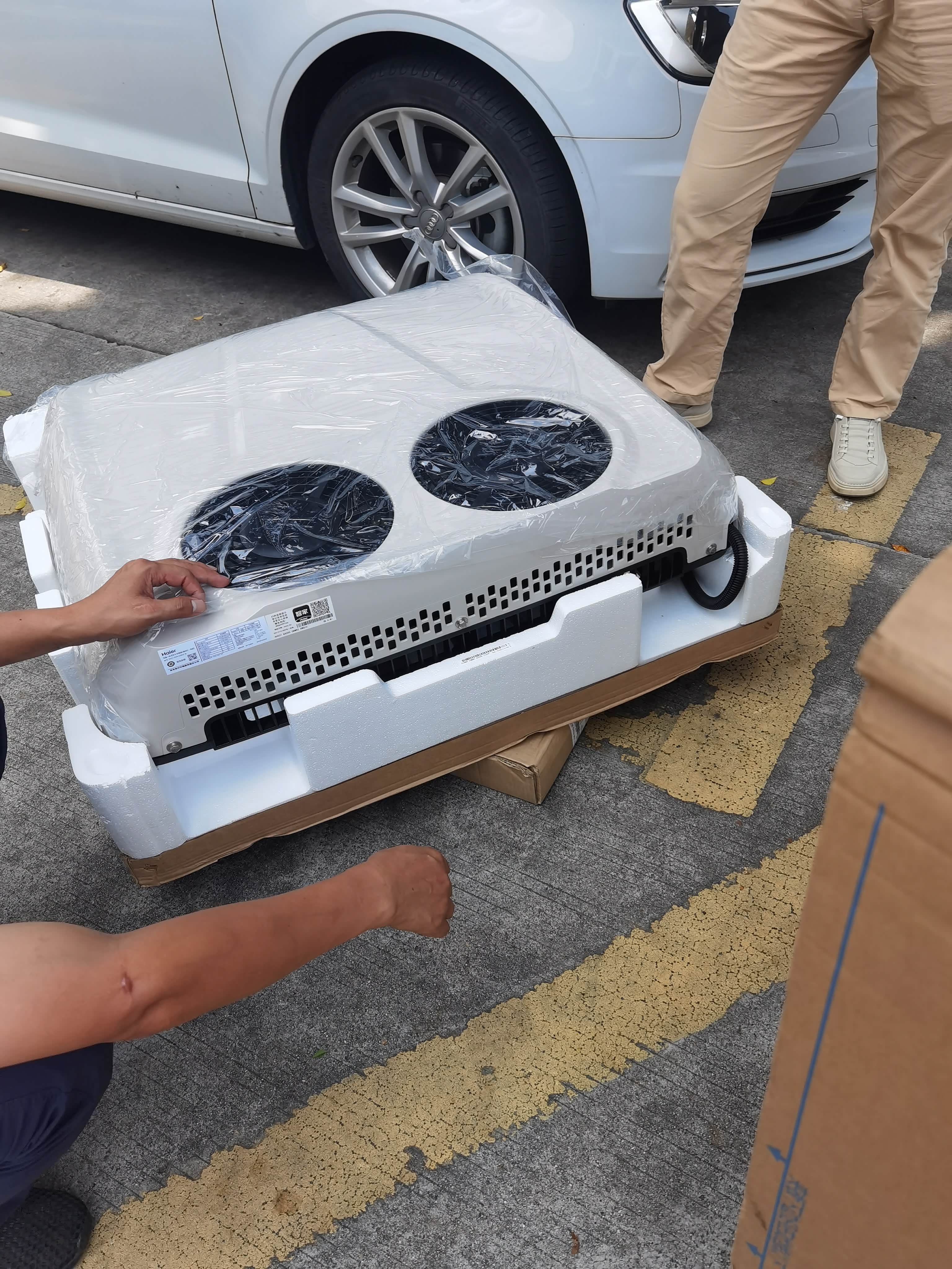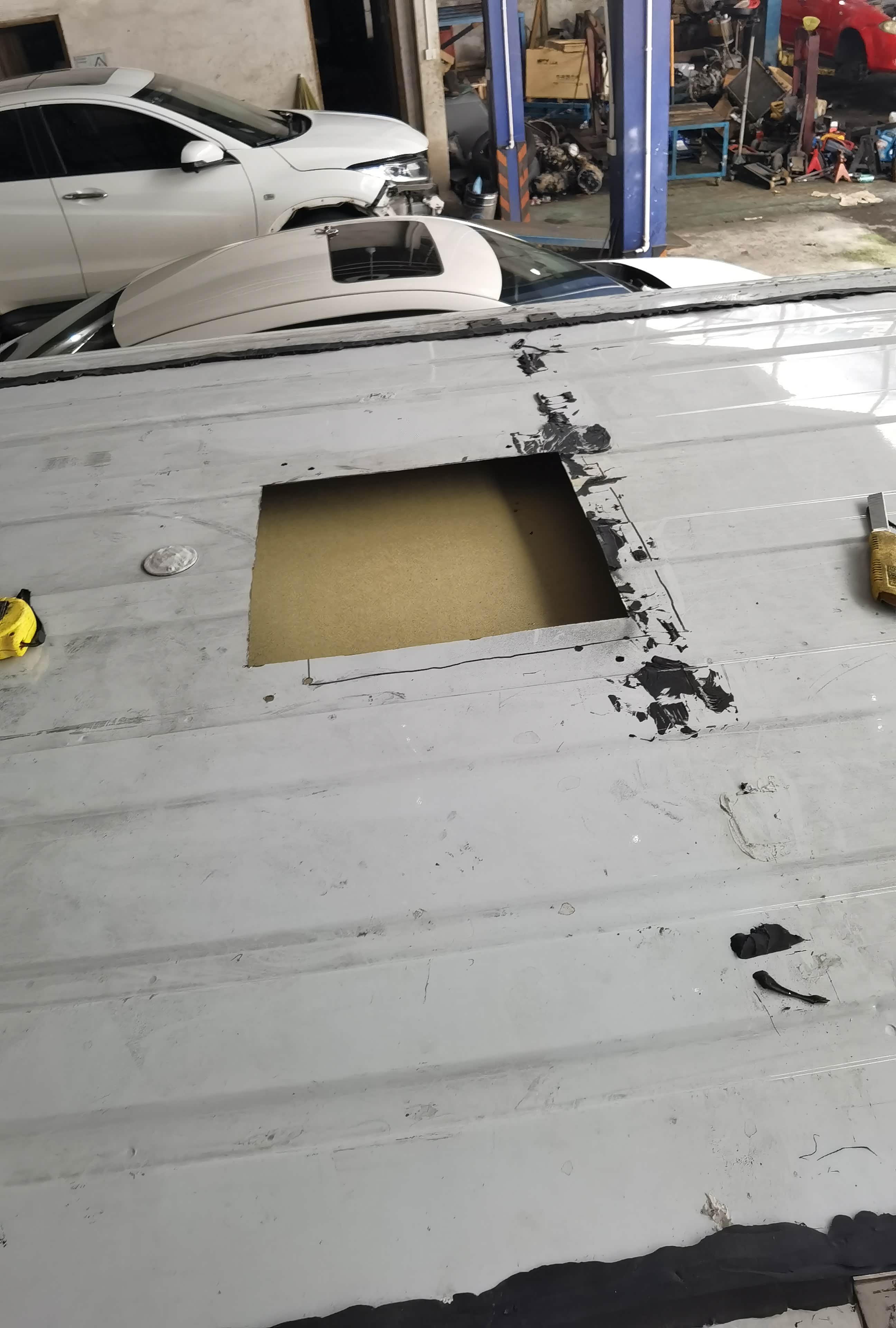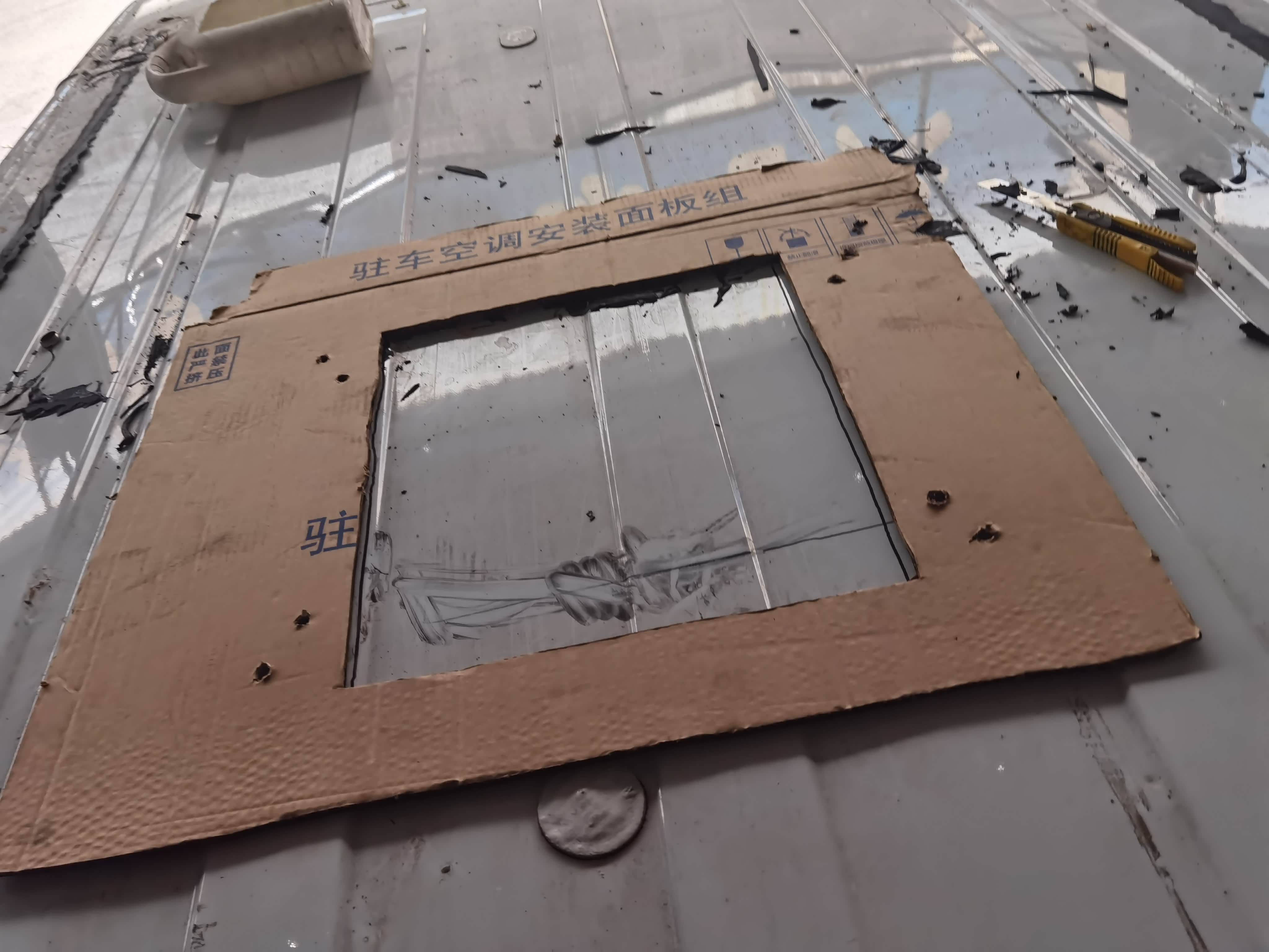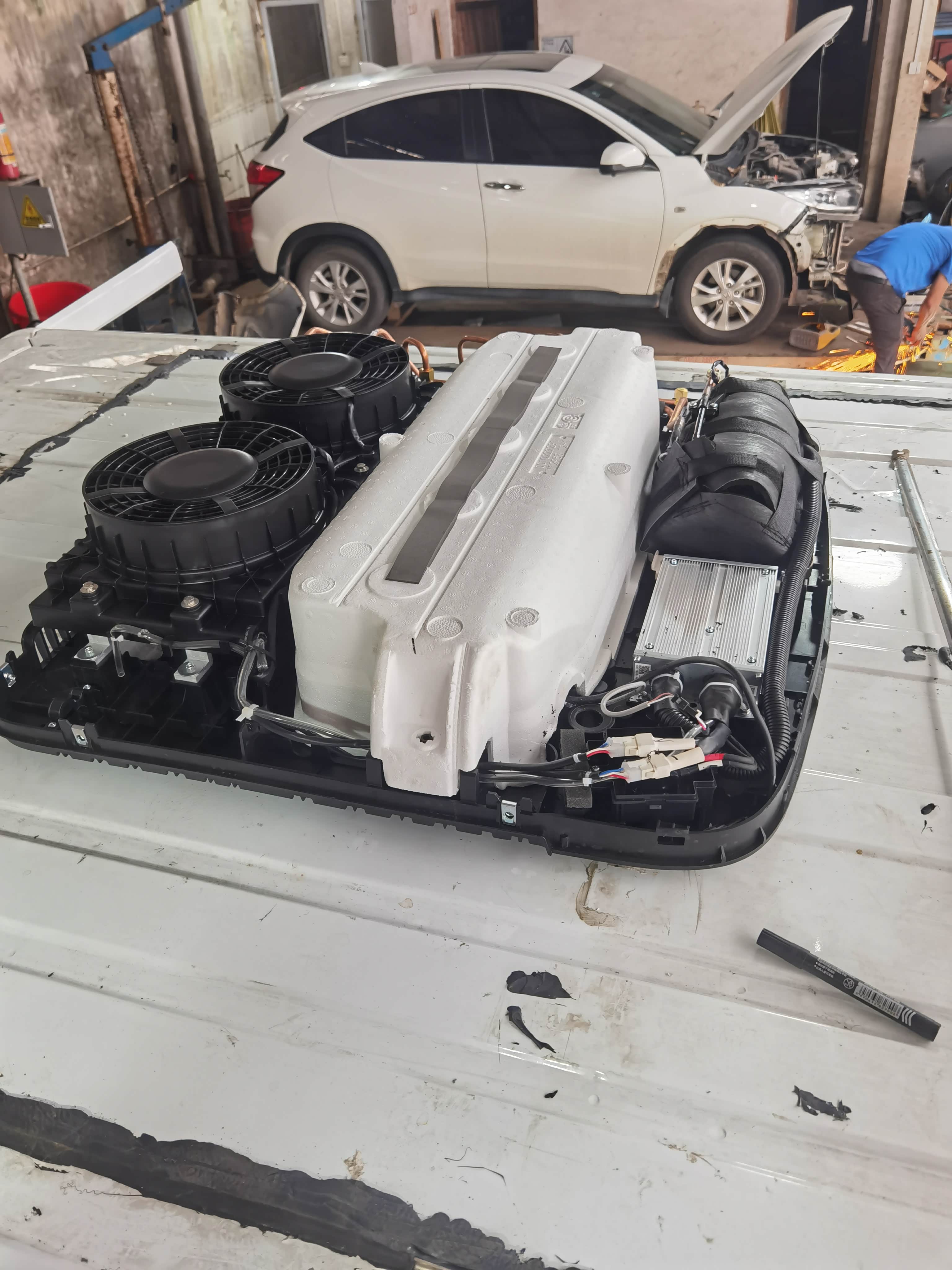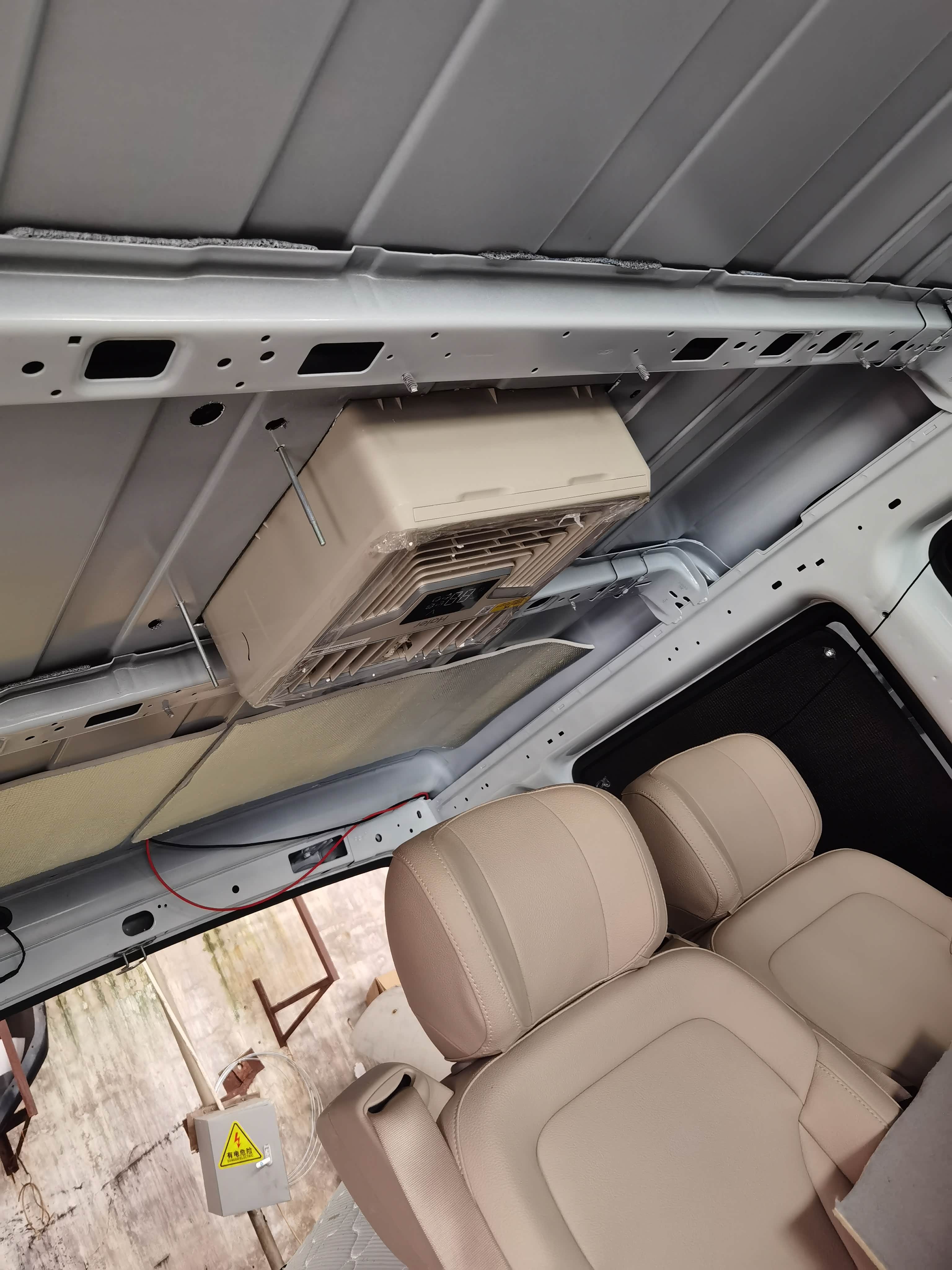 原来的不凉,是涡旋压缩。现在换双转子车顶一体机,车高2米4才能通过了,车顶要割开35*45的窗。