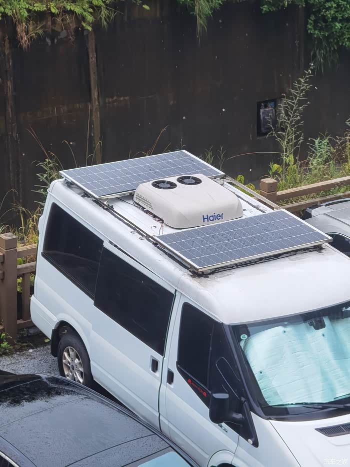 短低宿营车,原来装的固 城分体驻车空调不够冷,换一部海尔车顶驻车空调,要车顶开口,周未安装