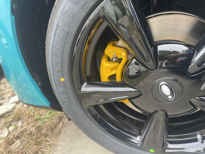 轮毂细节还不少,内里还增添了亮黄色卡钳,整体活跃度一下增添了许多。