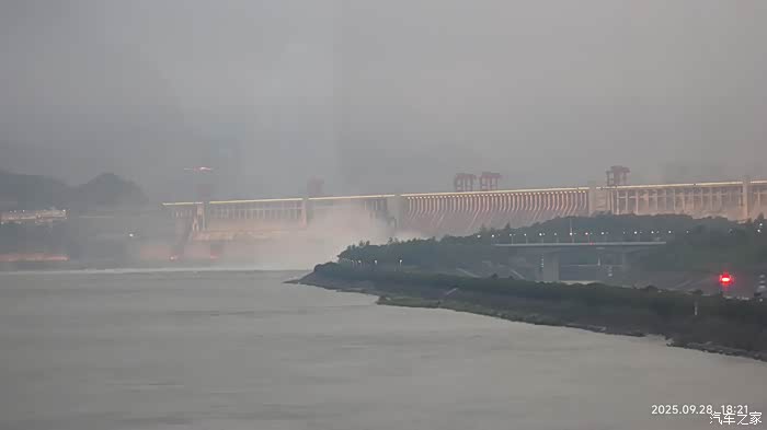 坐车回城,远眺三峡大坝。