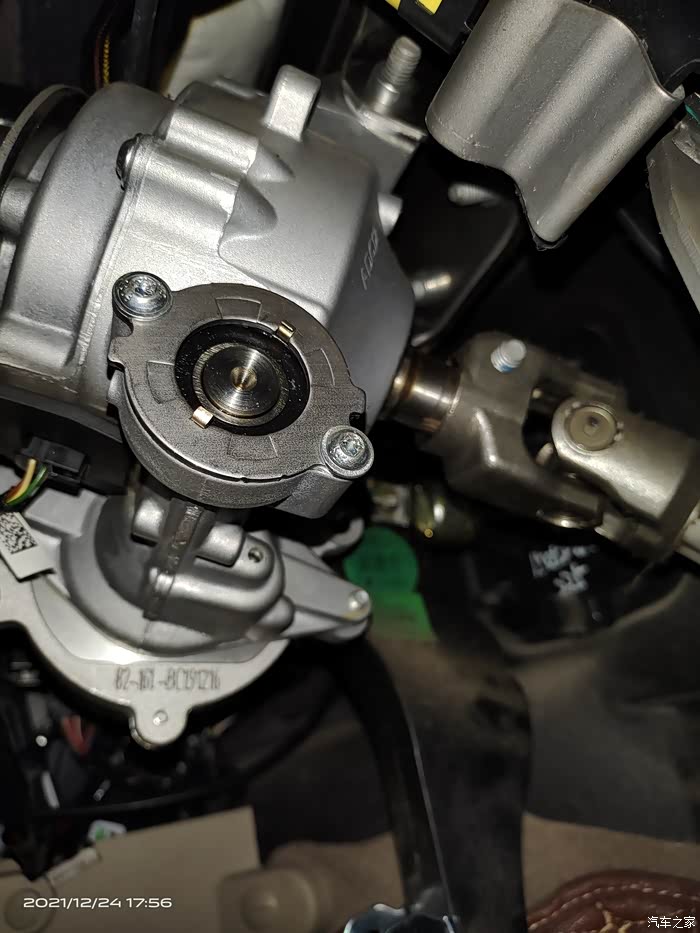 下面说说详细经历,我的车14款630是电子助力,在电机对侧有一个轴承端盖(这个很关键),我原打算拆开它,研究下能不能从这里下手去灌黄油,不想直接钻孔,拆下端盖后看到轴承慢慢移出来了一点,但取不下来,觉得没什么办法,打算装回去再打孔,然后又原样装了回去。装回去之后,怕那个轴承移动会出什么问题,就点火试车,试车就发现,方向盘卡滞问题没有了,打到底也没有那种一抖一抖咯咯响的现象了。居然就这样好了,到现在开了一段时间也没出现卡滞情况。我猜测是装回去的时候,歪打正着吧蜗轮蜗杆的配合间隙调好导致的,或者是蜗杆在移动过程中,把它周围的润滑脂蹭到了一些,然后润滑了齿面。不管怎样,现在暂时是好了。