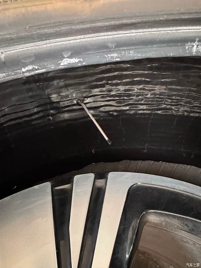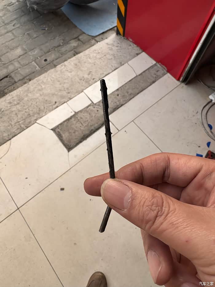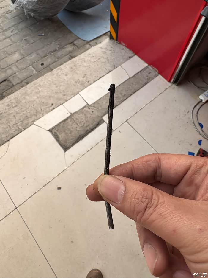 今天车机上胎压报警了,还是去汽修店拆了看一下,发现了这么长的铁钉。